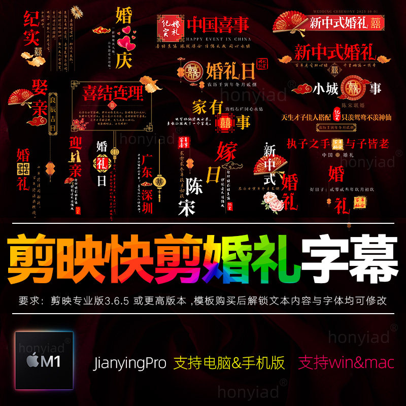 📚 剪映新中式婚礼字幕模板草稿透明底排版纪实文字体视频素材支持M1