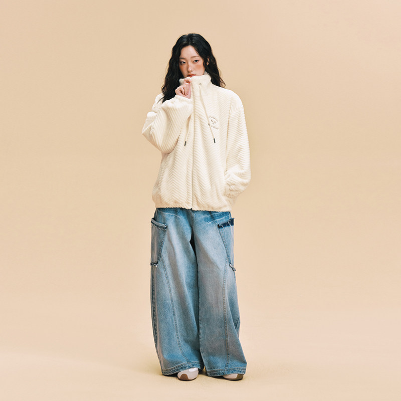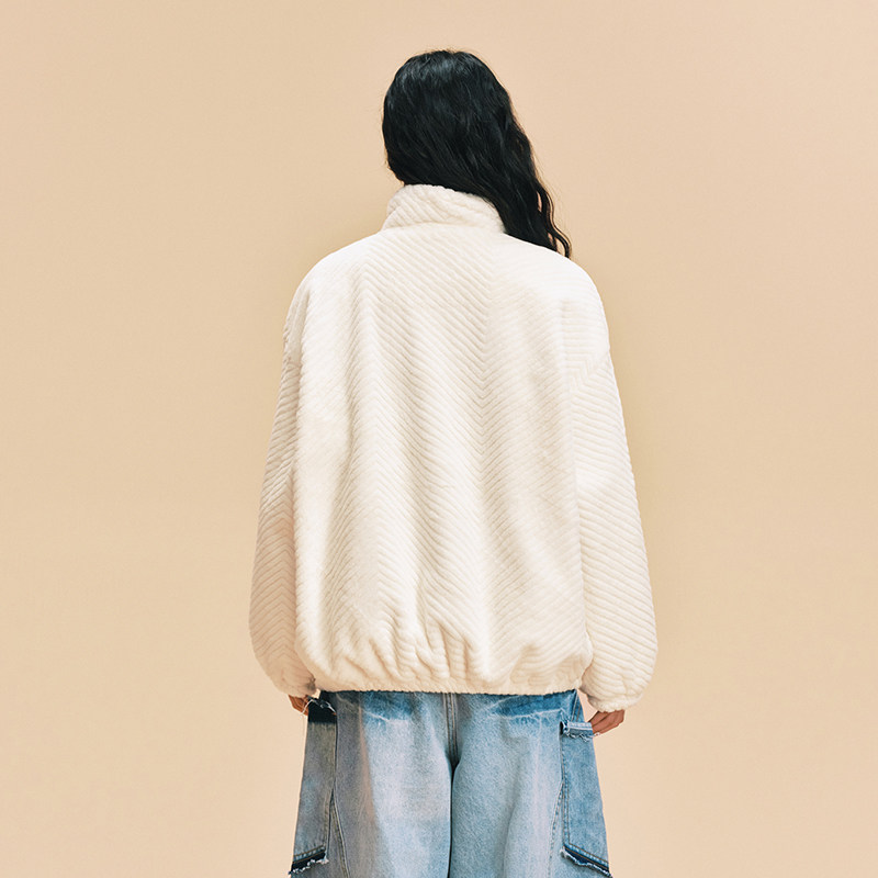 📚 【DNA官方】毛绒外套25年秋冬仿兔毛刺绣保暖宽松立领开衫外套女