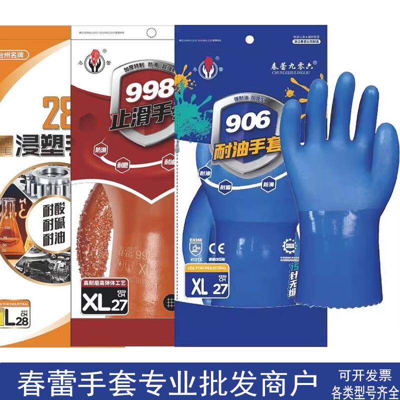 📚 正品春蕾906手套劳保耐磨pvc防油工作加绒防水工业防护防滑渔业用