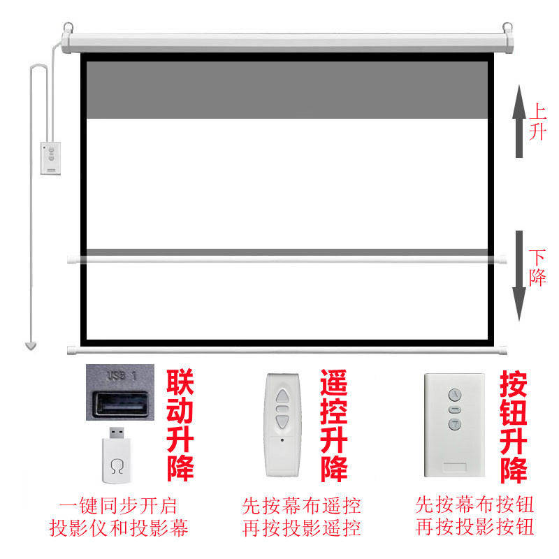 📚 联动升降电动幕布投影家用升降电动投影布幕布电动投影仪幕布自动升降幕布电动投影幕布电动升降投影屏幕定制