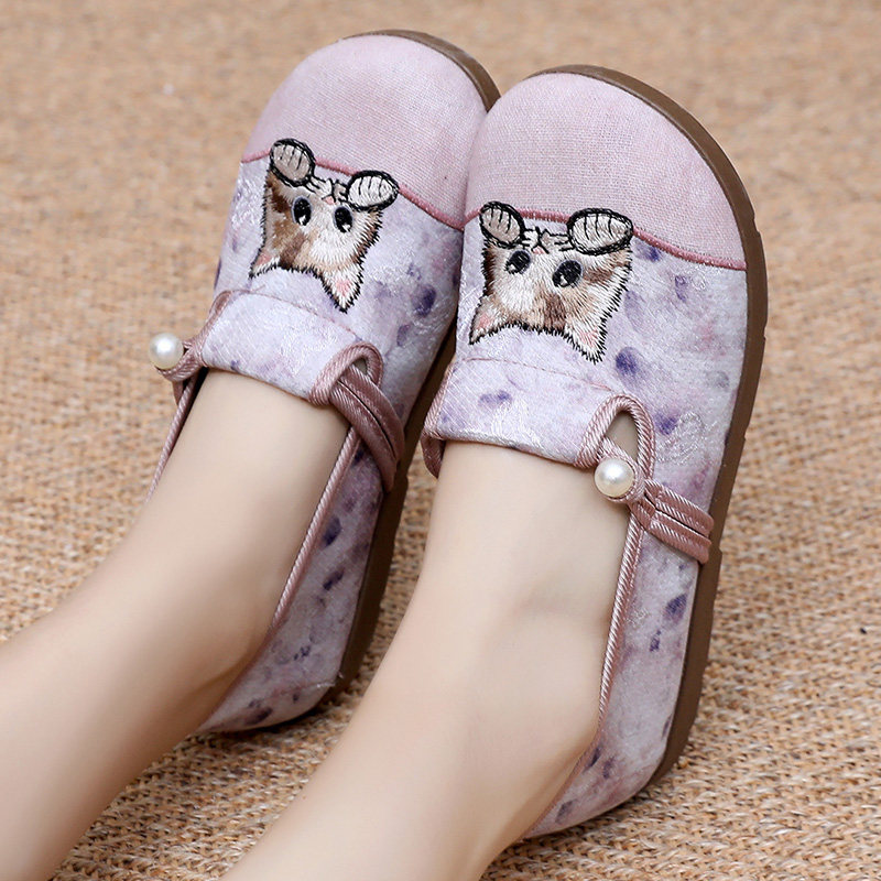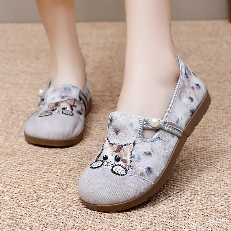 📚 春季新款老北京布鞋女绣花鞋一脚蹬平底妈妈鞋百搭休闲鞋透气单鞋