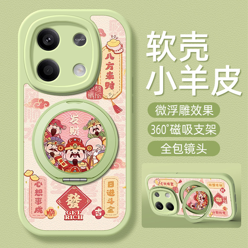📚 发财财神适用红米note15手机壳带支架红米note14pro/13/12/11/10/9/8/7新款Turbo3/4保护套Redminote15pro+十