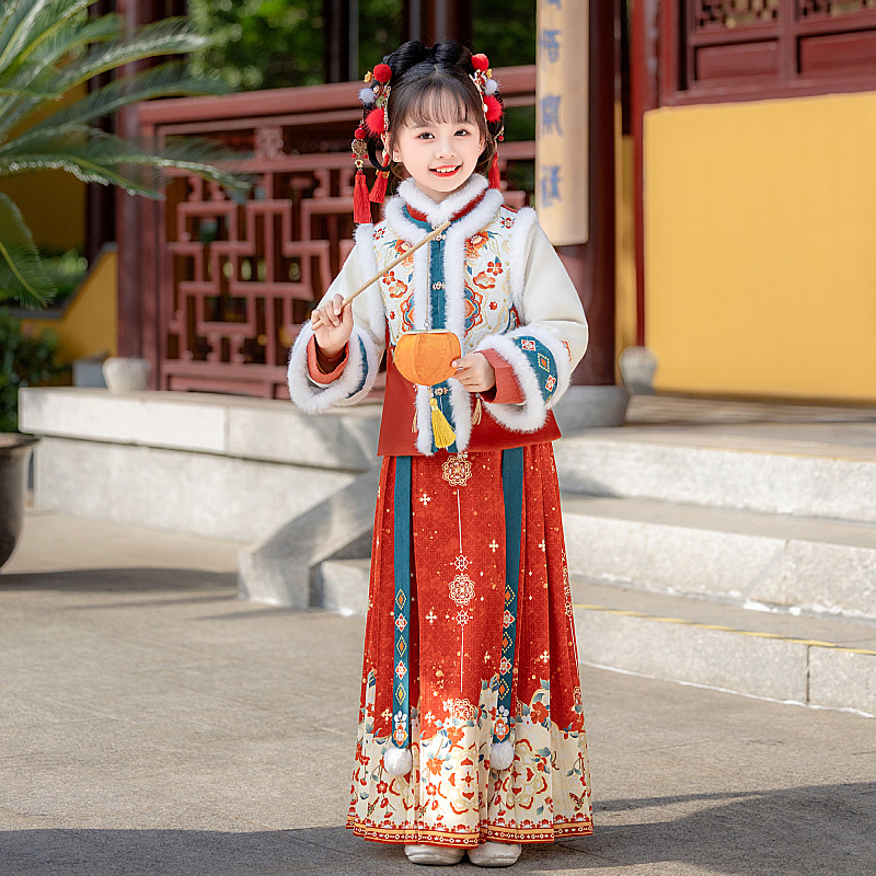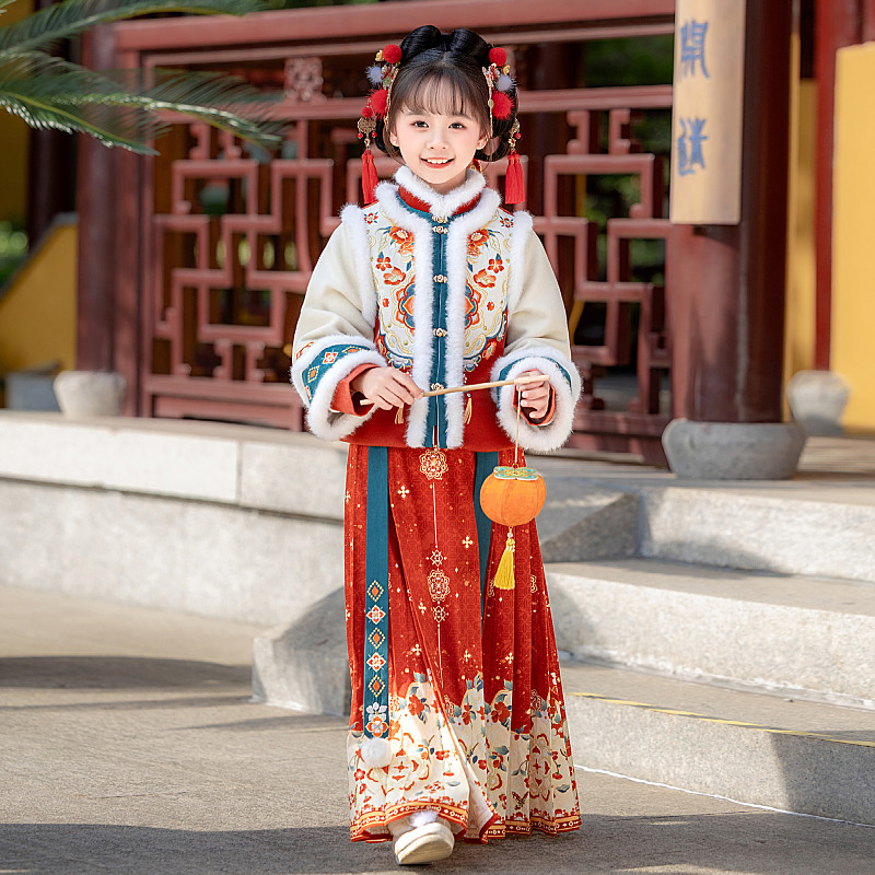 📚 汉服女童冬季加厚明制马面裙套装儿童唐装拜年服秋冬新年冬装古装