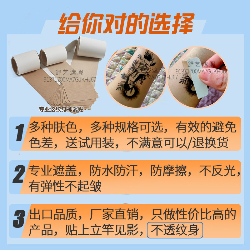 📚 遮纹身隐形强力肤色贴专业遮盖疤痕胎记神器持久防水透气遮瑕胶布