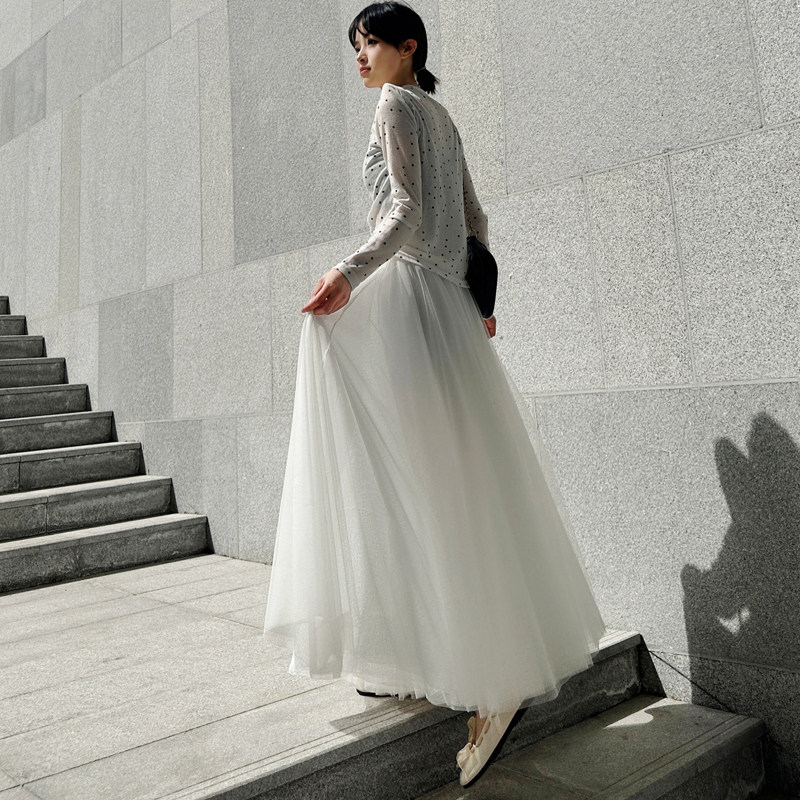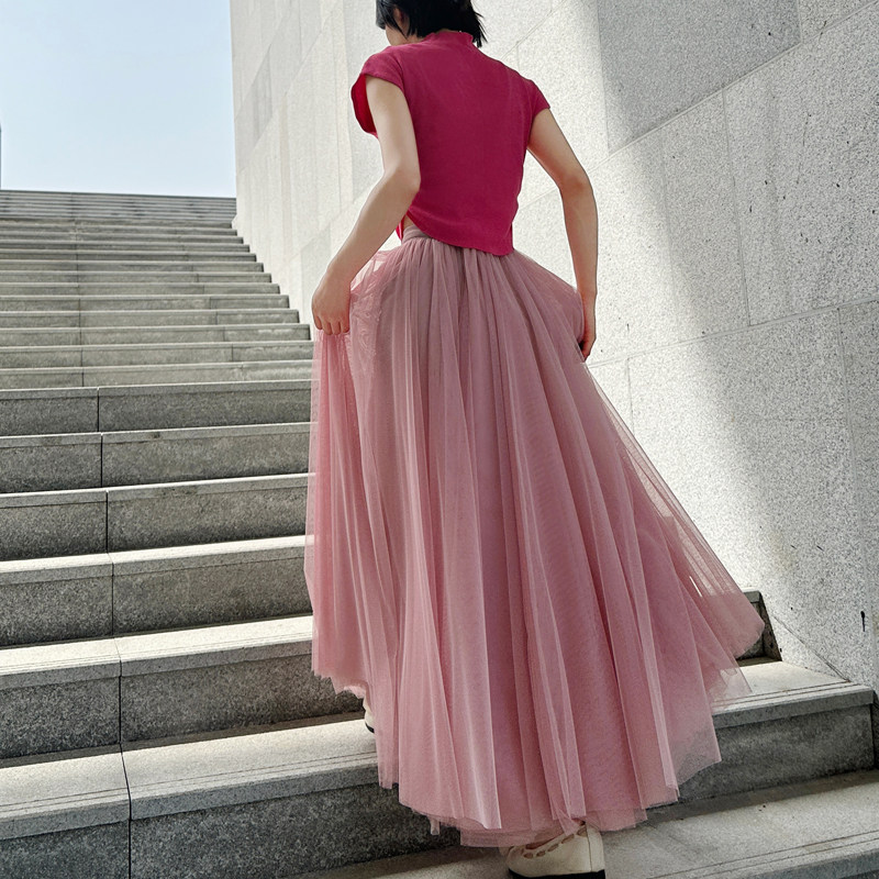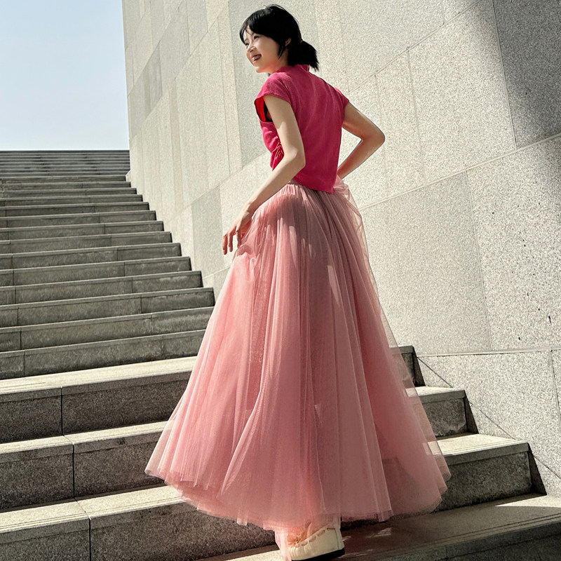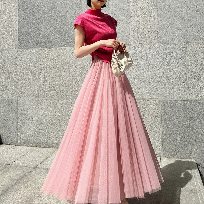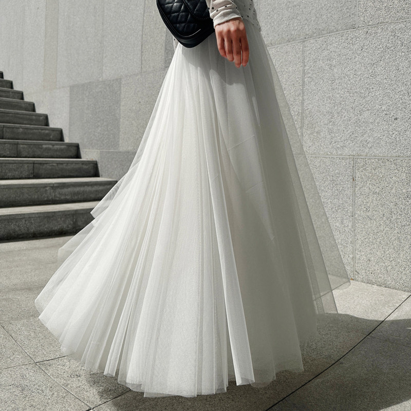 📚 时尚网纱半身裙女春夏季明星同款李多海纯色A字裙大摆高腰蓬蓬裙