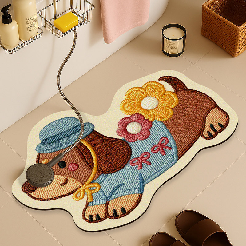 📚 力力猪卡通浴室吸水地垫卫生间厕所防滑脚垫家用入户玄关门垫子