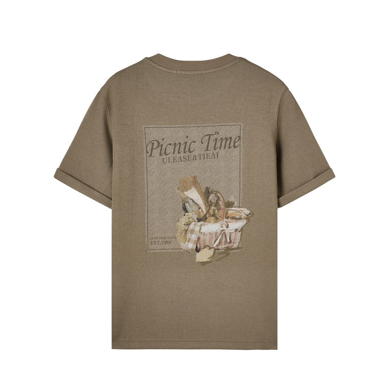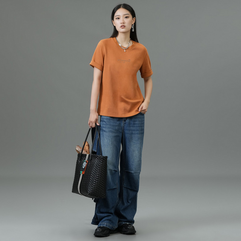 📚 U/TI桔黄色印花正肩亲肤T恤女 百搭棉感短袖上衣尤缇2025春季新款