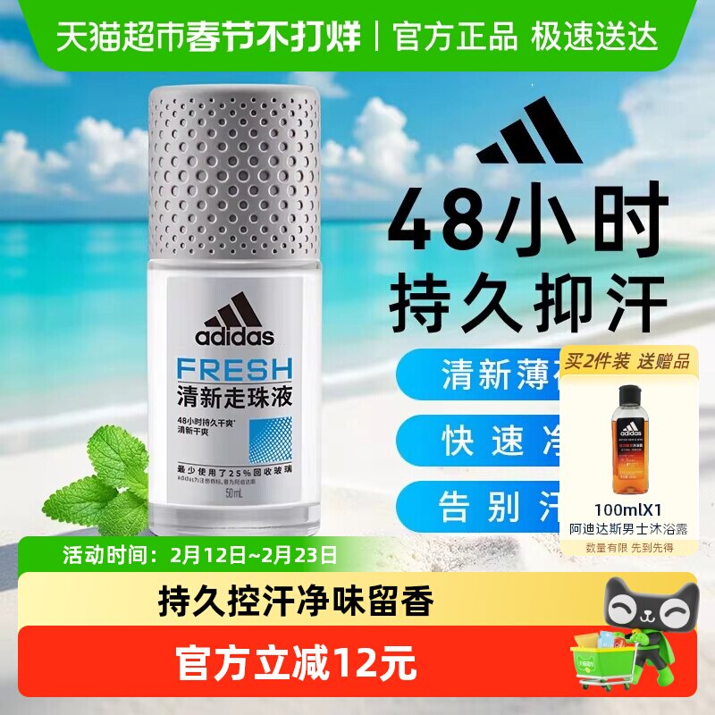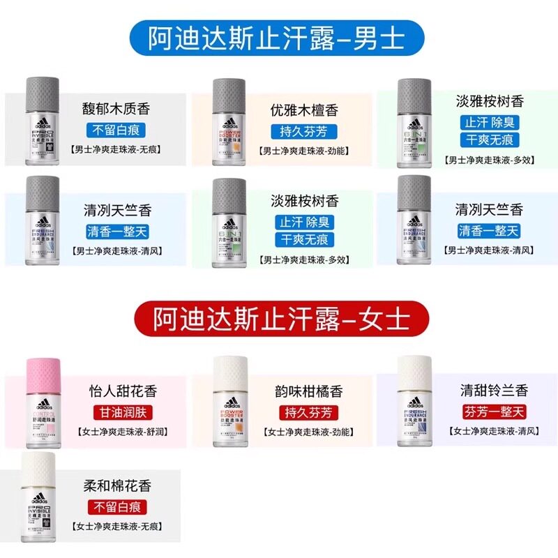 📚 阿迪达斯Adidas男士清新止汗露走珠腋下止汗香体液去臭净味香50ml