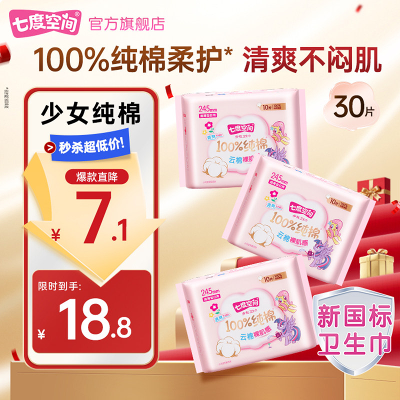 📚 【淘宝秒杀】七度空间少女纯棉超薄卫生巾日夜用姨妈巾旗舰店