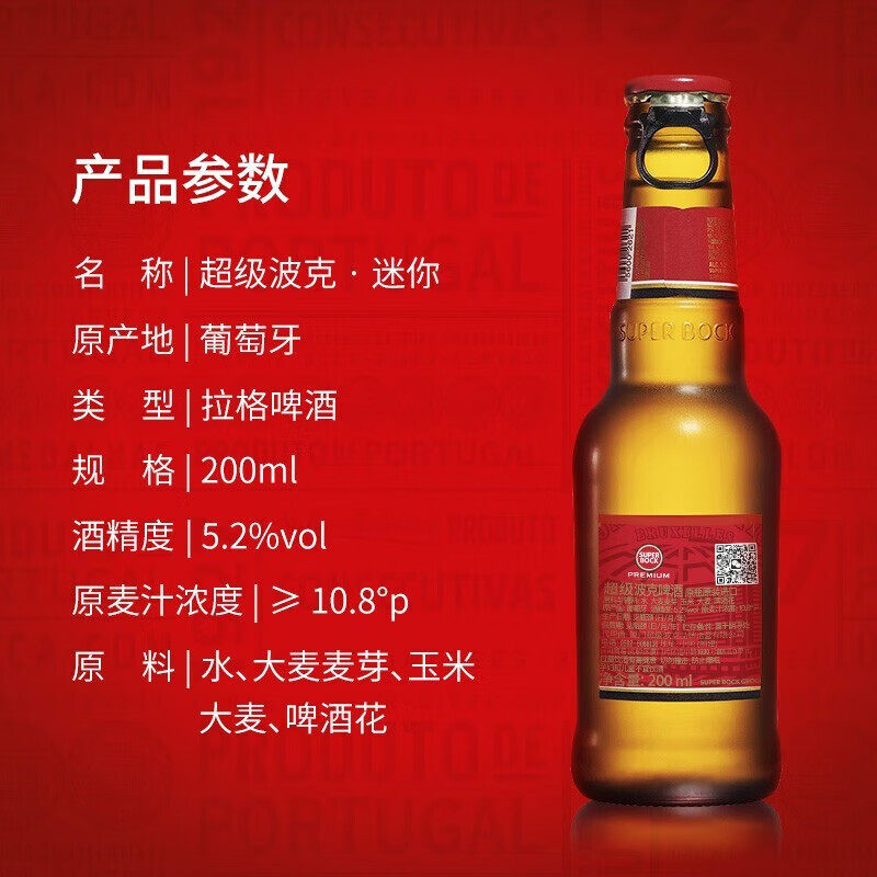 📚 SuperBock超级波克铝瓶355ML*6/12/24瓶经典拉格黄啤国产