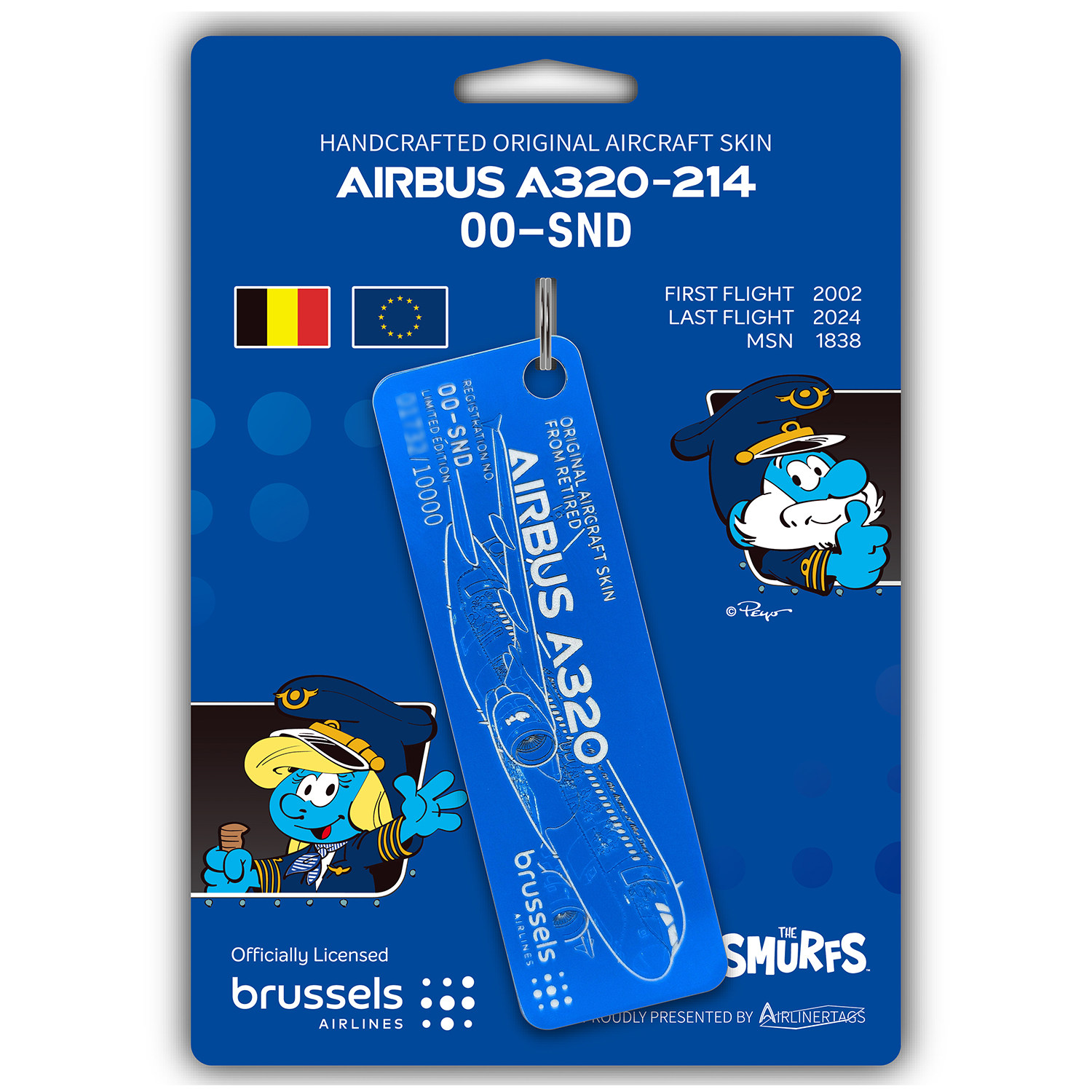 📚 Airlinertags蓝精灵联名布鲁塞尔空客A320飞机蒙皮钥匙扣文创挂件