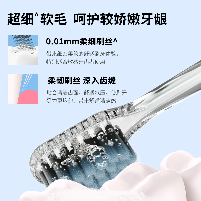 📚 青蛙软毛炭丝成人高颜值高密植毛牙刷套装小头男女牙刷