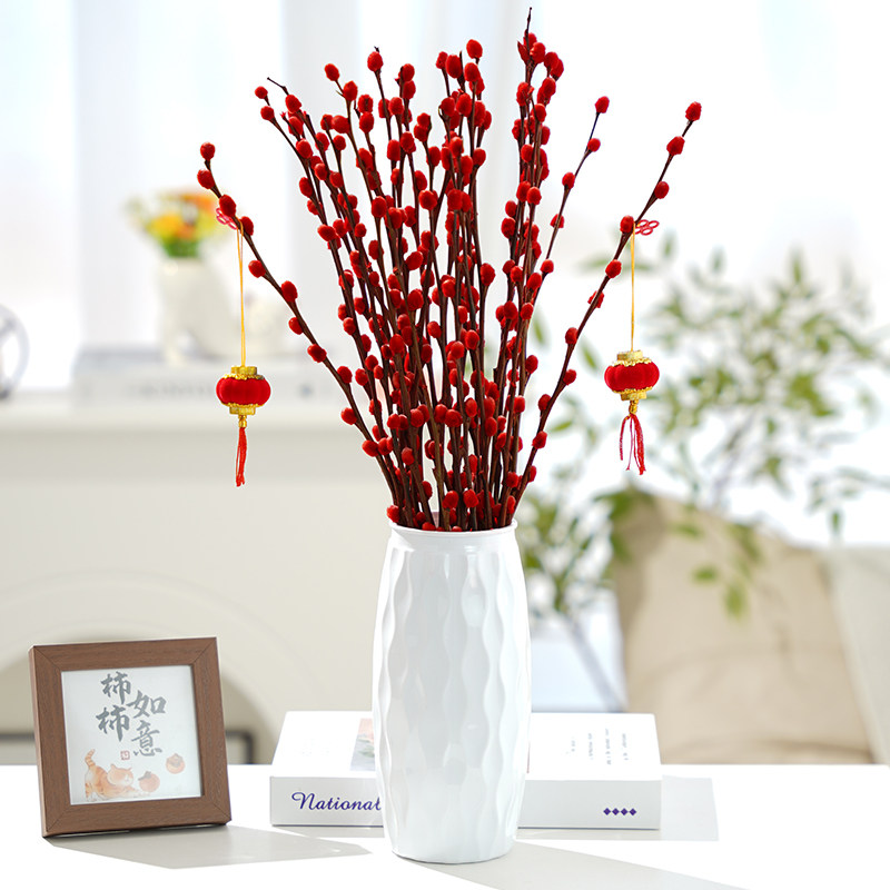 📚 年宵花卉银柳真花鲜枝红色水培植物室内干枝红柳鲜花客厅干花摆件