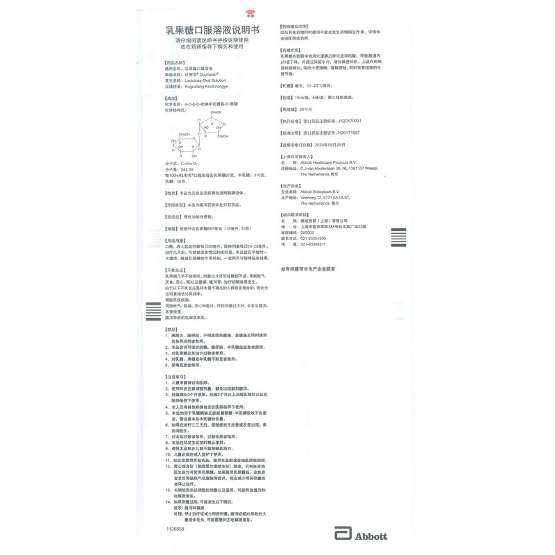 📚 雅培 杜密克 乳果糖口服溶液 15ml*6袋/盒 慢性功能性便秘药