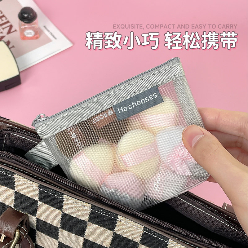 📚 粉扑收纳袋美妆蛋口红化妆品便携式网纱袋女外出旅行迷你化妆包