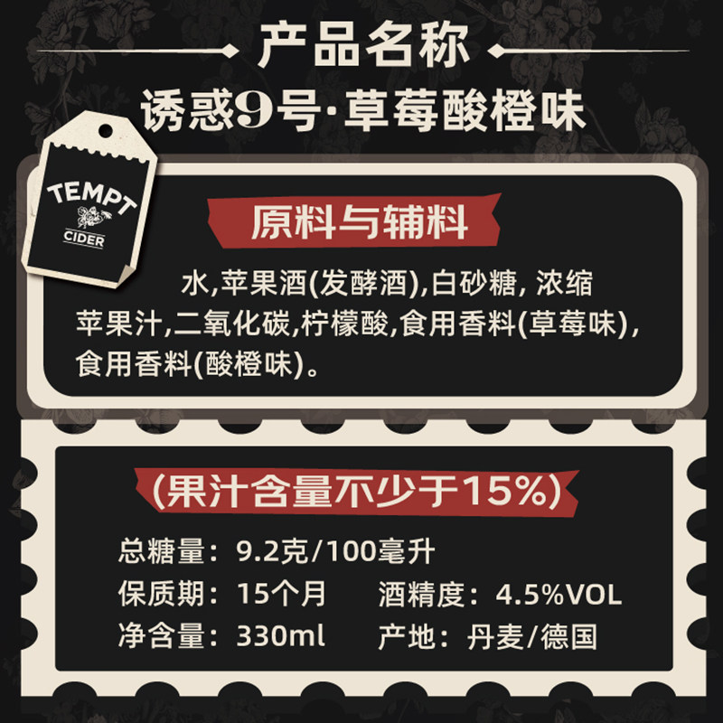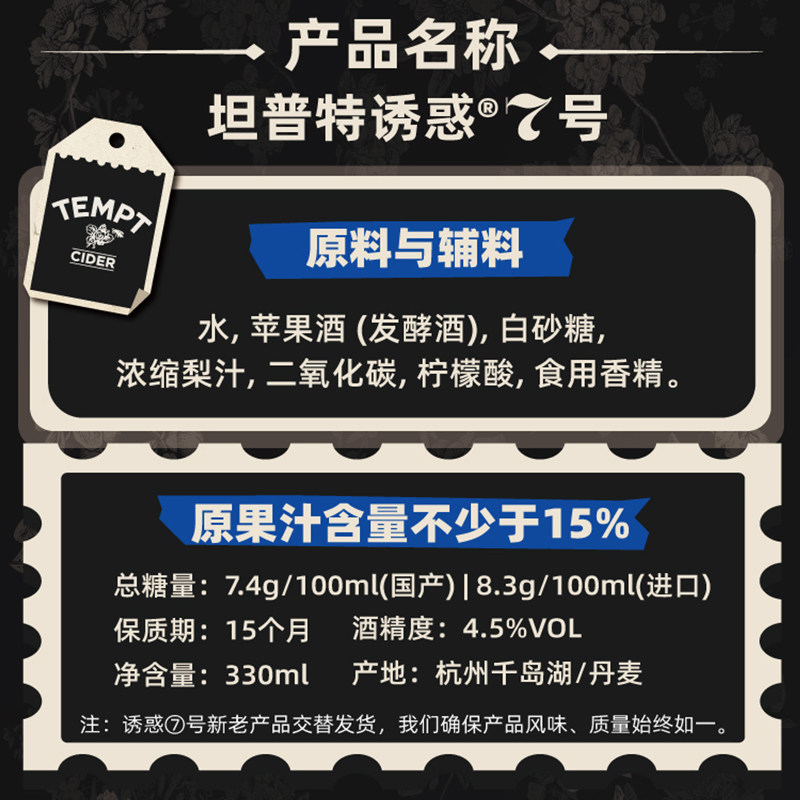 📚 TEMPT西打果酒甜酒微醺低度诱惑7号接骨木味多口味聚会