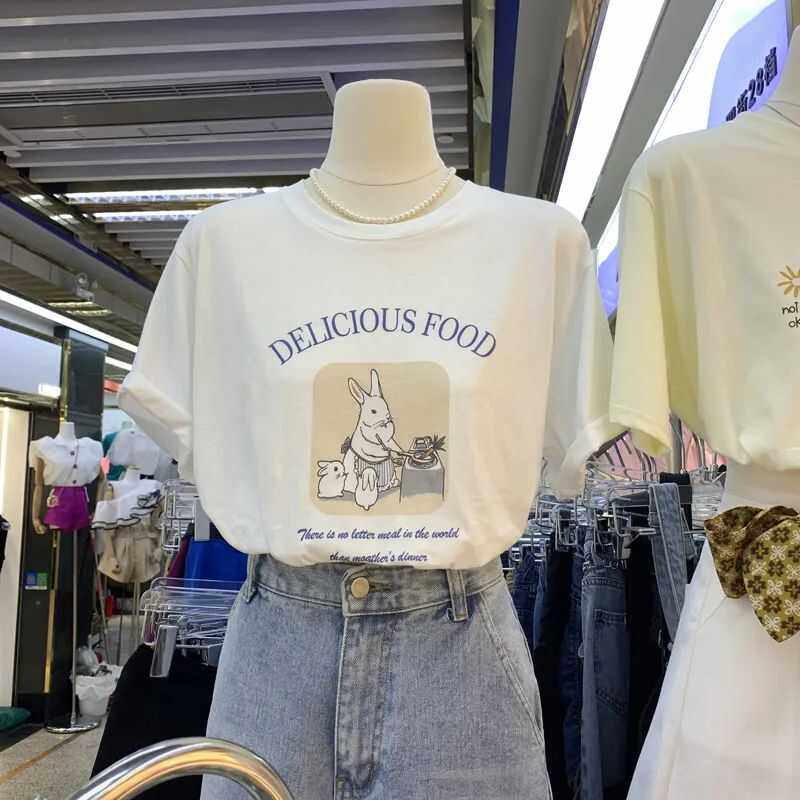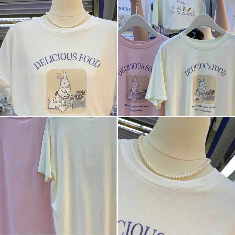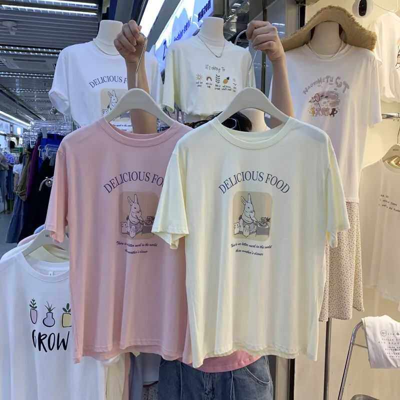 📚 超手感莫代尔韩版小兔甜美宽松百搭2025卡通印花休闲短袖t恤女