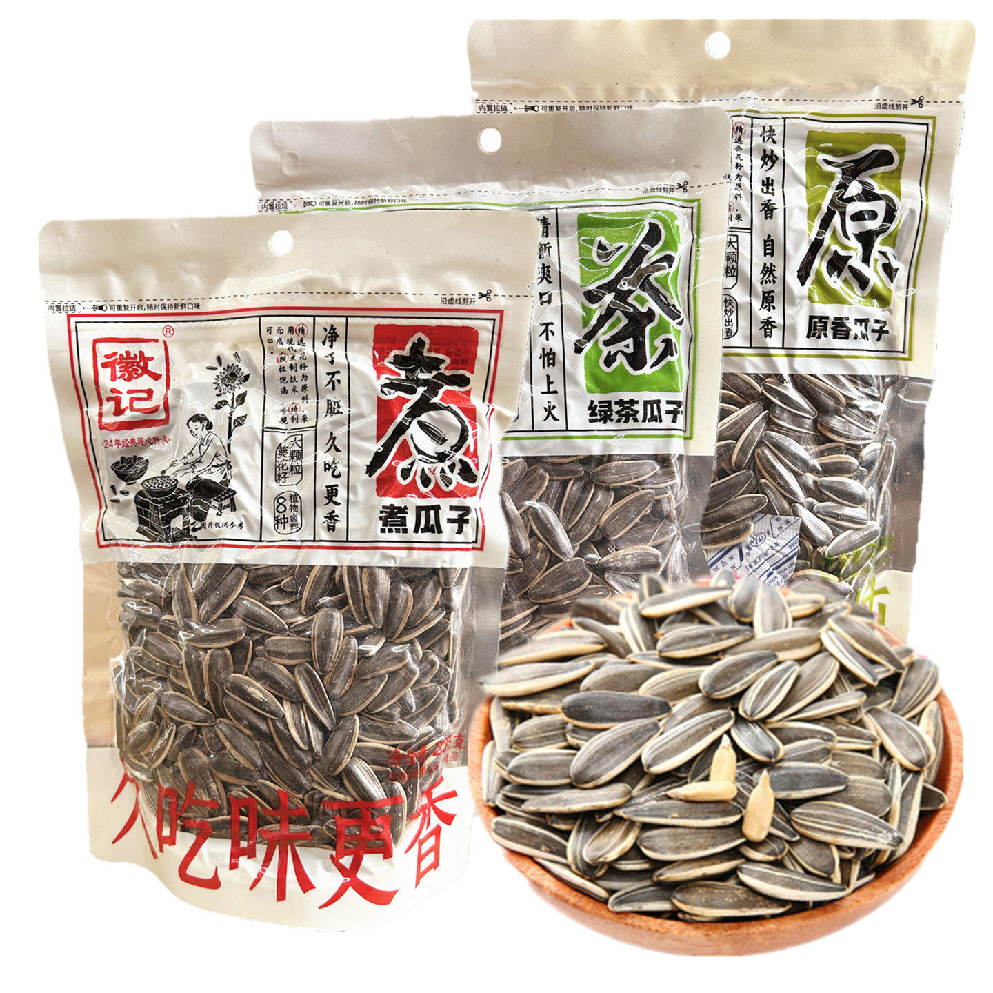 📚 徽记原香瓜子205g绿茶瓜子煮瓜子葵花籽散装坚果炒货休闲解馋零食