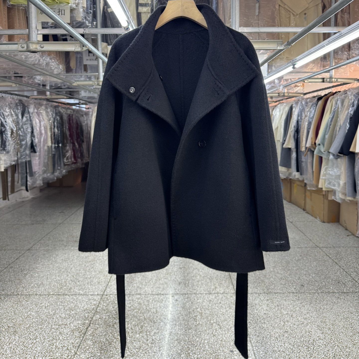 📚 黑色立领短款牦牛绒双面羊毛大衣女25年秋冬新款韩版气质毛呢外套