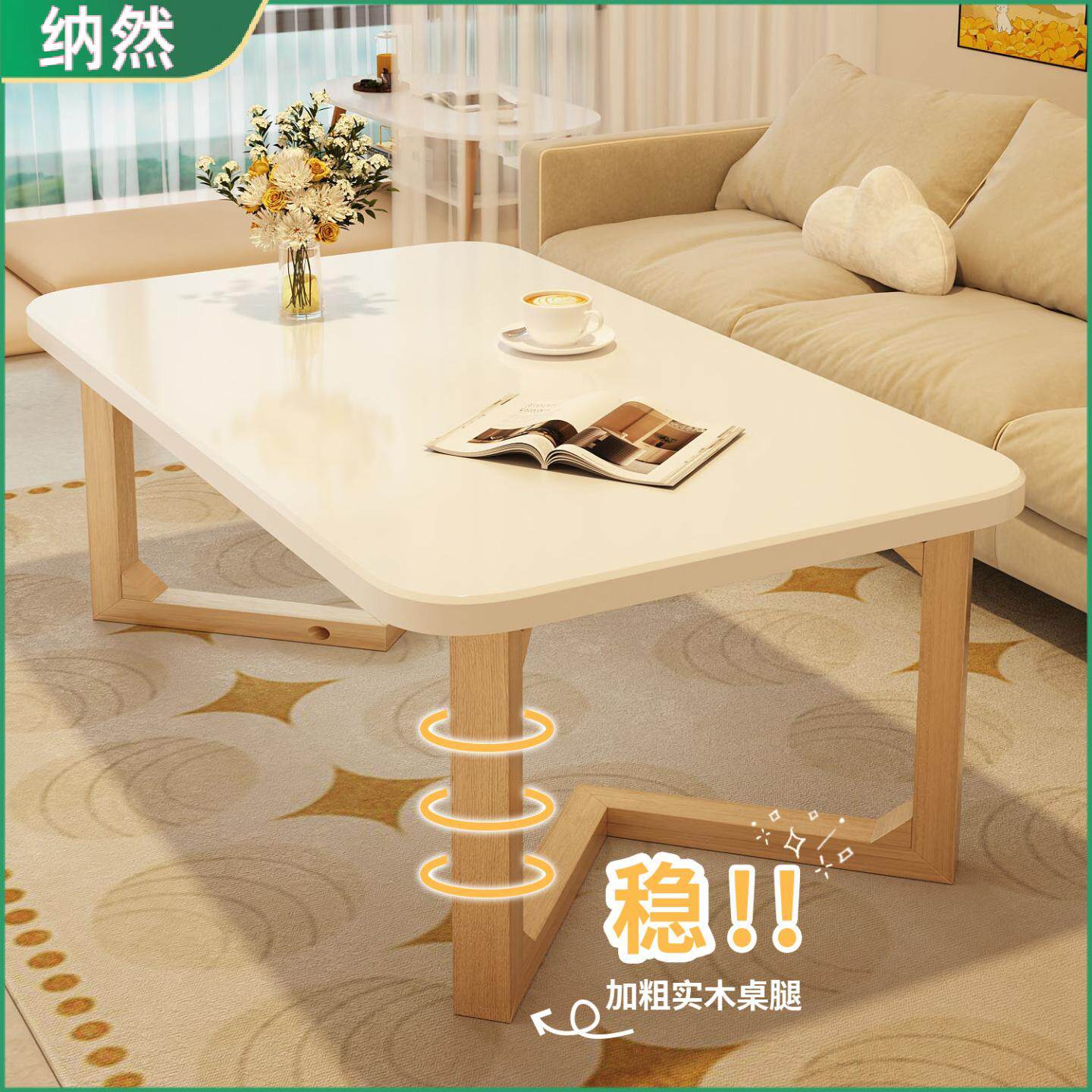📚 纳然出租屋用卧室小茶桌坐地懒人实木桌腿茶几客厅家用小户型桌子