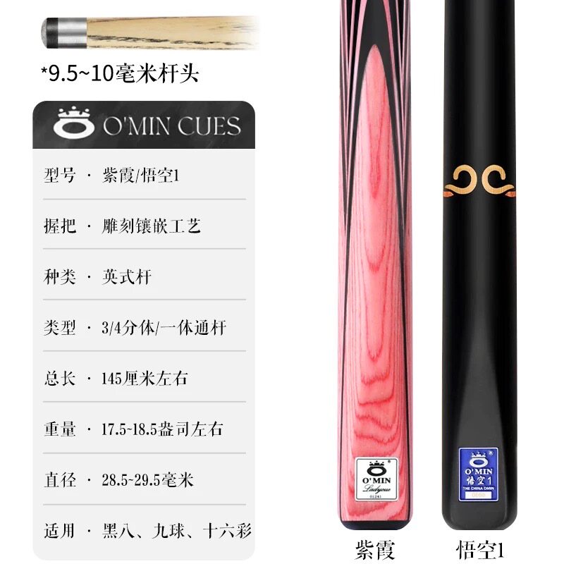 📚 奥秘紫霞情侣台球杆紫霞悟空台球杆小头杆通体黑八桌球杆专属杆盒