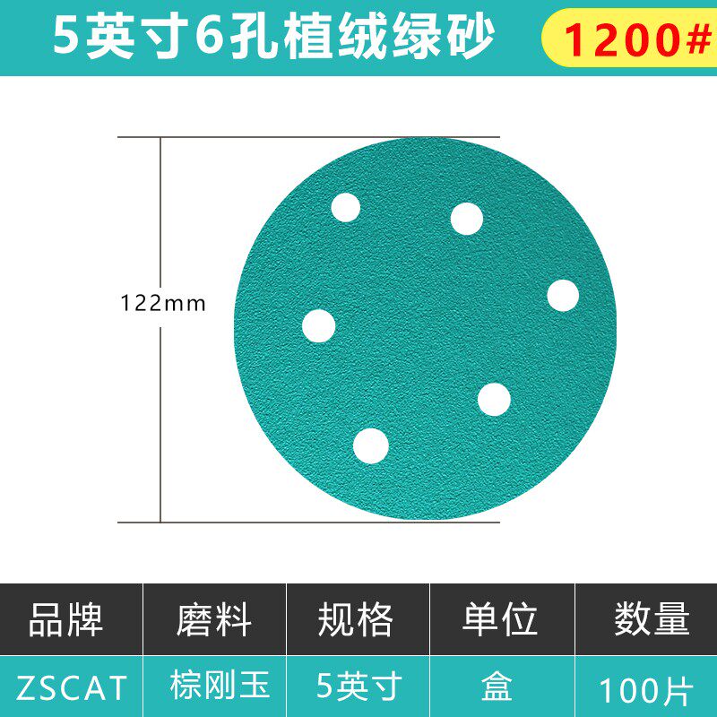 📚 费斯托用6寸17孔干磨砂纸5寸6孔植绒圆盘绿砂纸汽车抛光打磨自粘