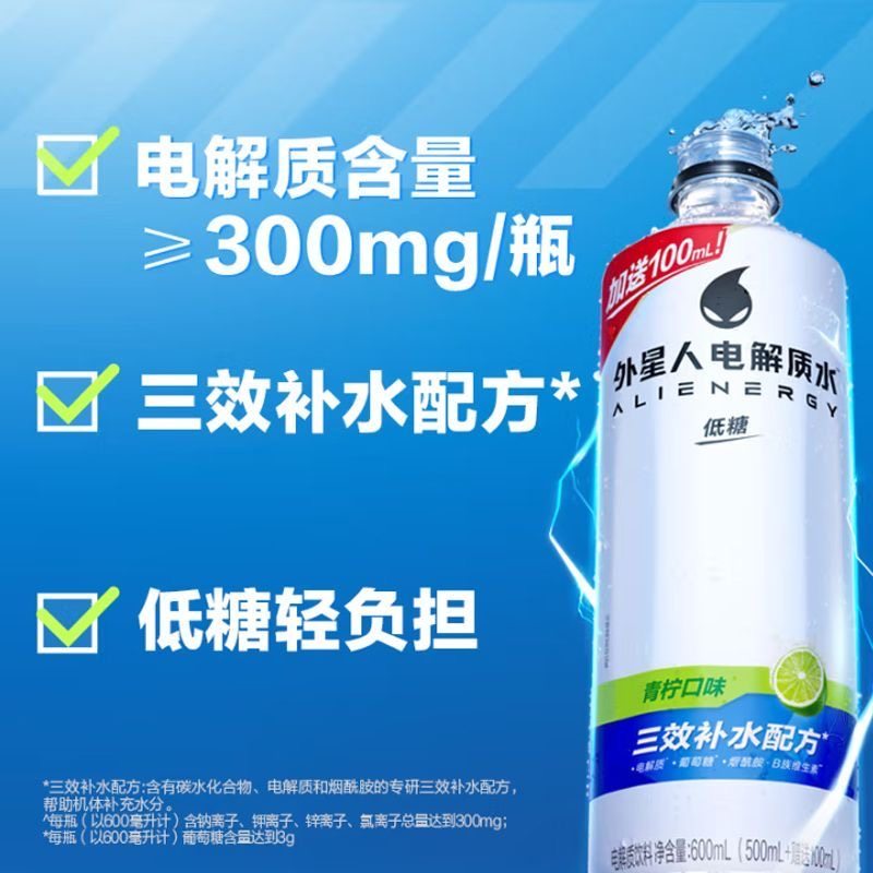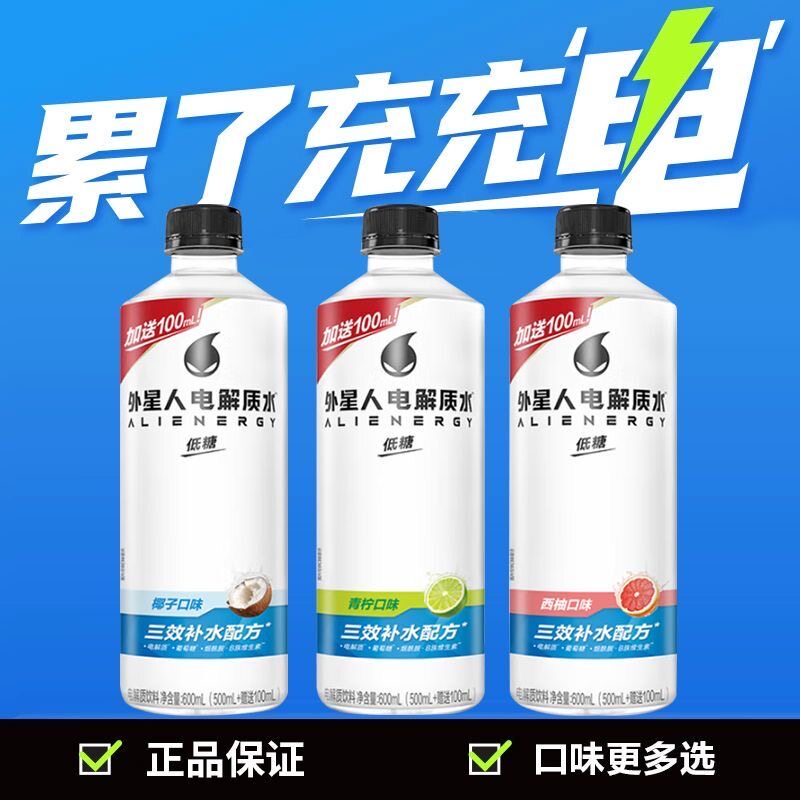 📚 外星人电解质水500/600ml/瓶青柠白桃味运动健身电解质补水饮料