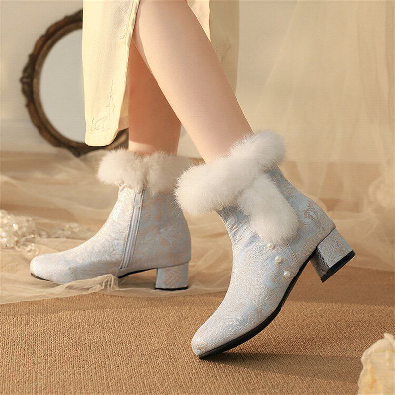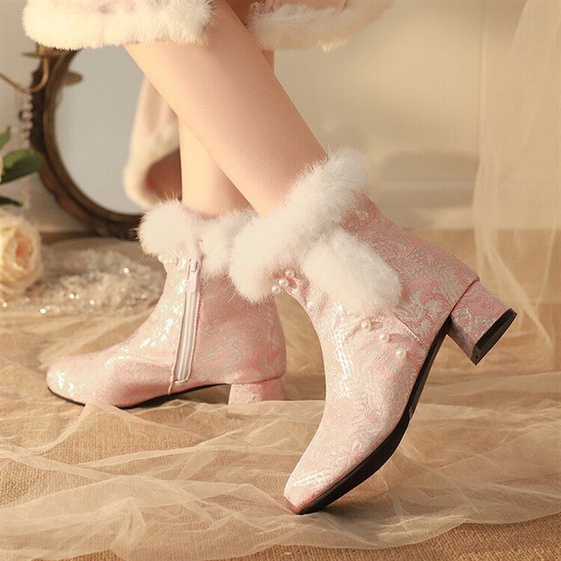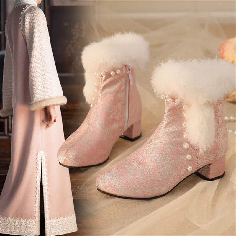 📚 搭配旗袍高跟鞋女复古短靴秋冬古风汉服配的N鞋子冬季加绒新中式