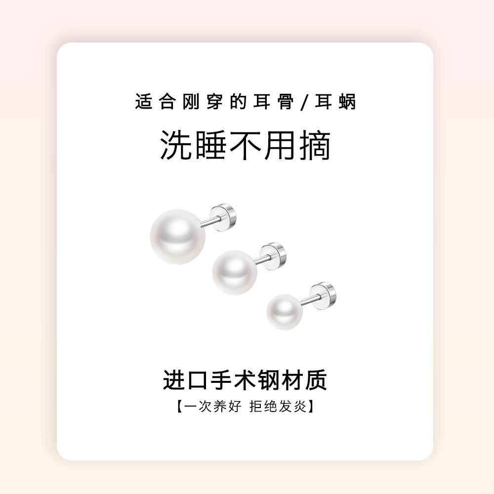 📚 医用钛钢珍珠耳钉女养耳洞小众耳环螺丝拧扣高级感耳骨钉耳棒耳饰