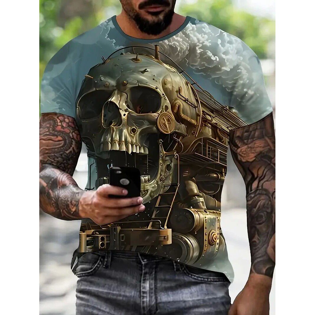 📚 3D printed T-shirt with train pattern休闲火车图案3d印花T恤男