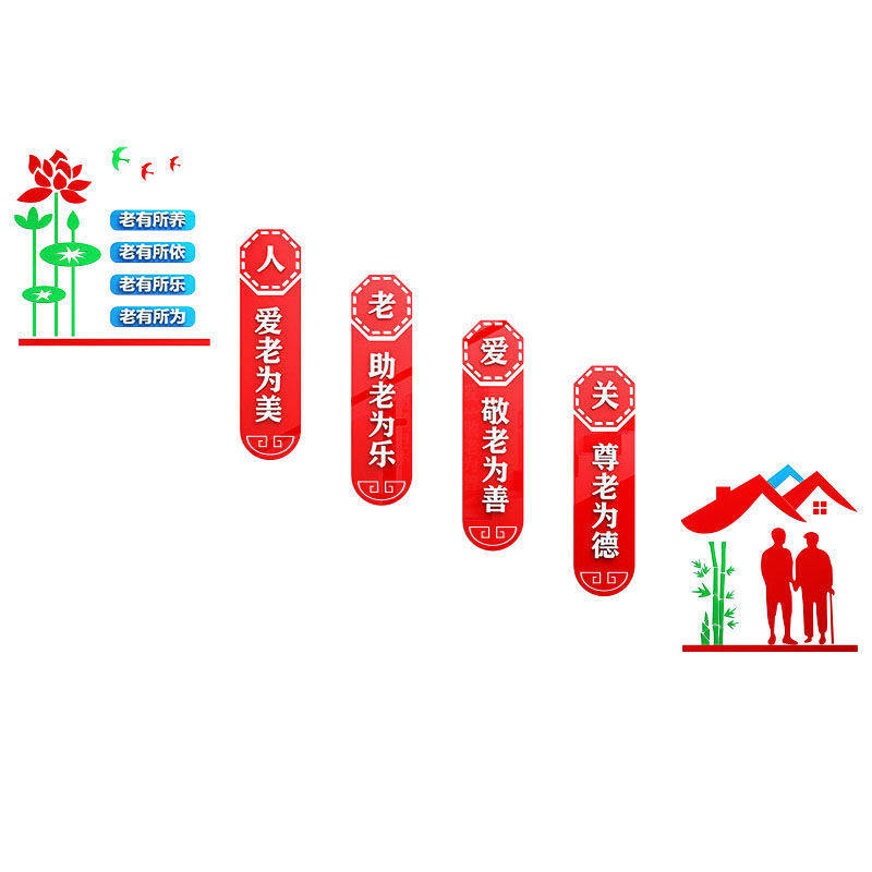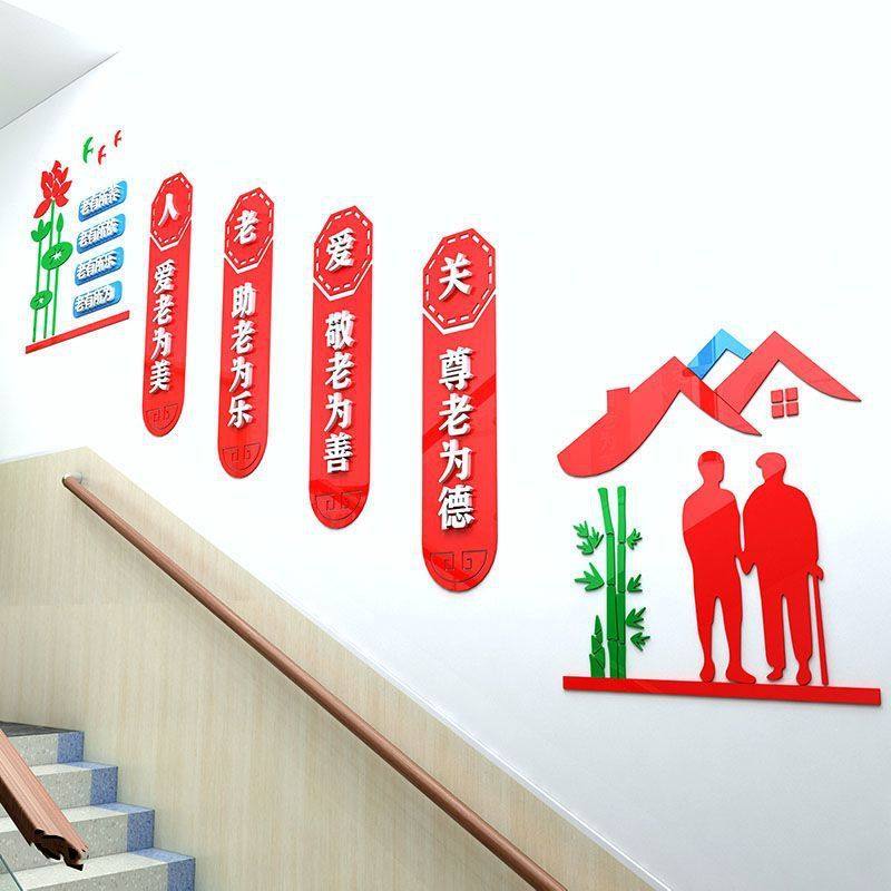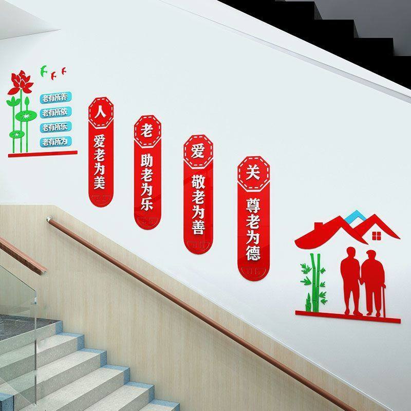 📚 养老院文化墙贴楼梯间墙面装饰敬老院亚克力自粘3d立体字宣传标语
