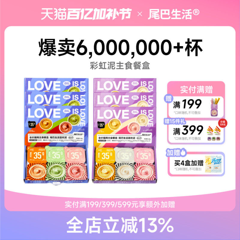 📚 尾巴生活彩虹泥喜欢泥猫主食罐成猫幼猫一餐一杯小克重猫罐头