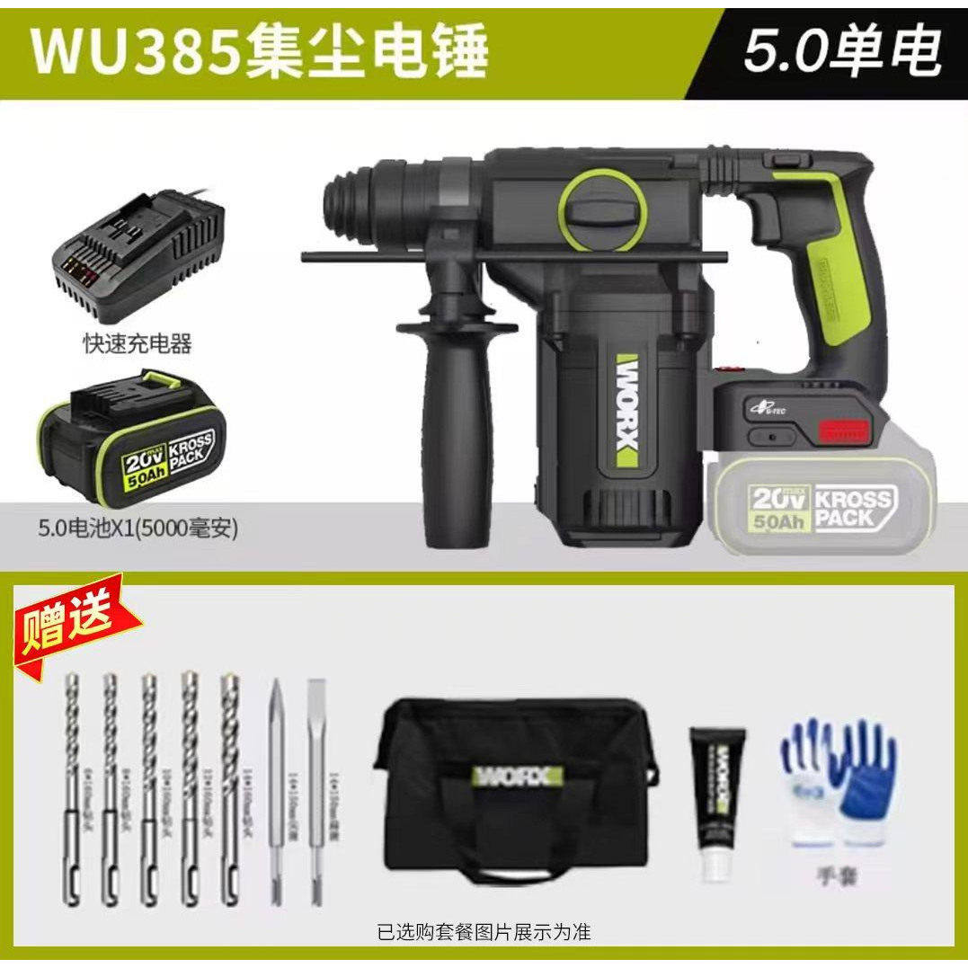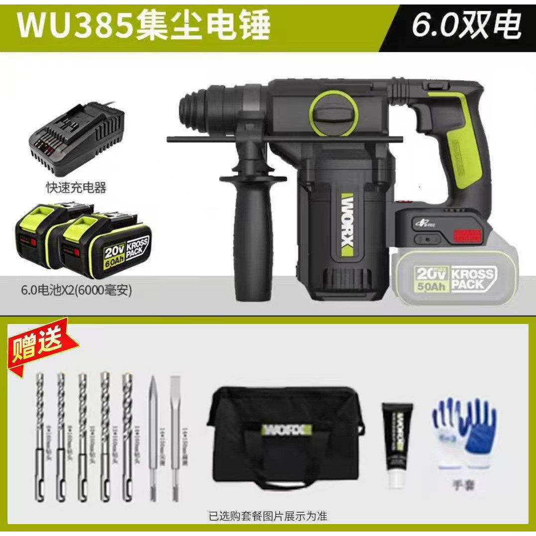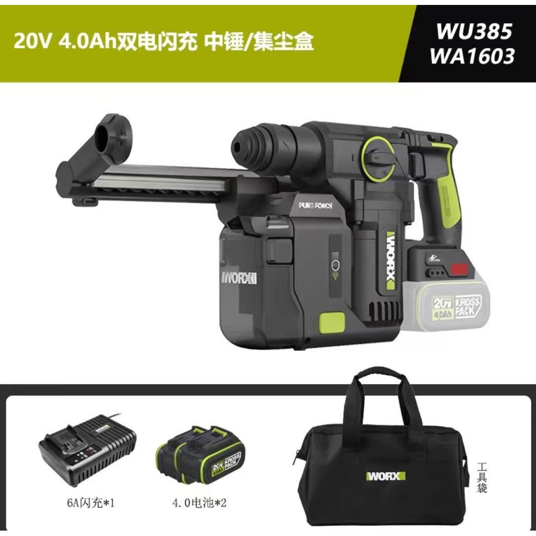 📚 WORX威克士WU385电锤20V锂电多功能三用电钻集尘电锤电子脉冲无刷