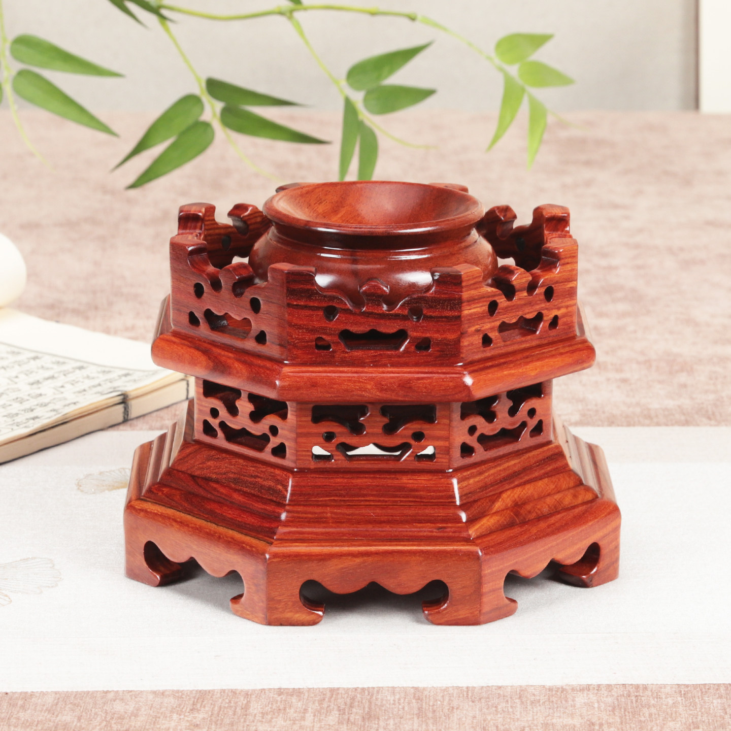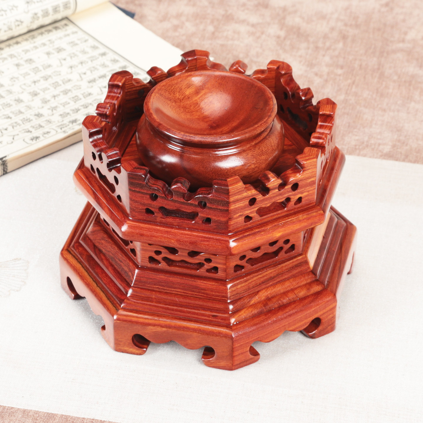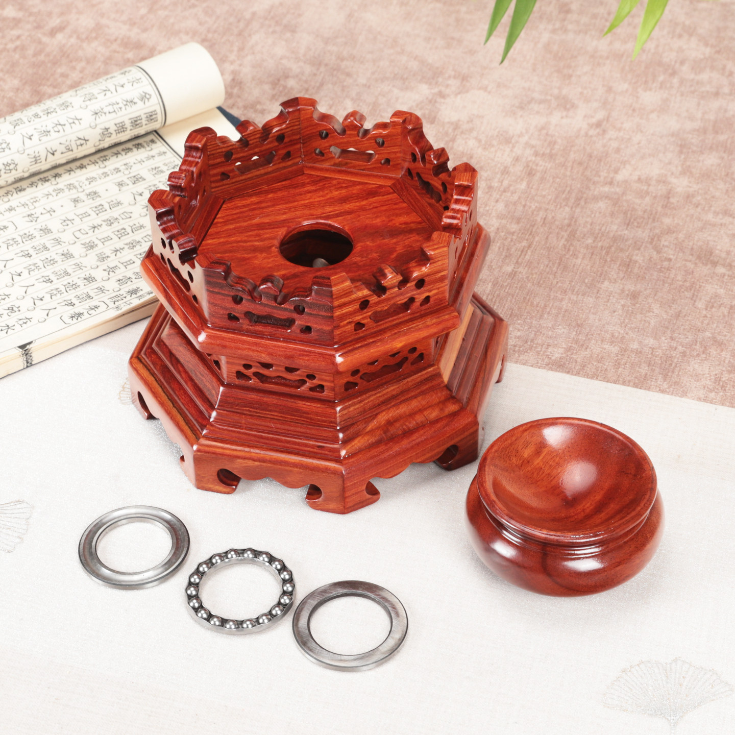 📚 红木雕水晶球风水球底座托可旋转蛋雕葫芦夜明珠石球弧形摆件托架