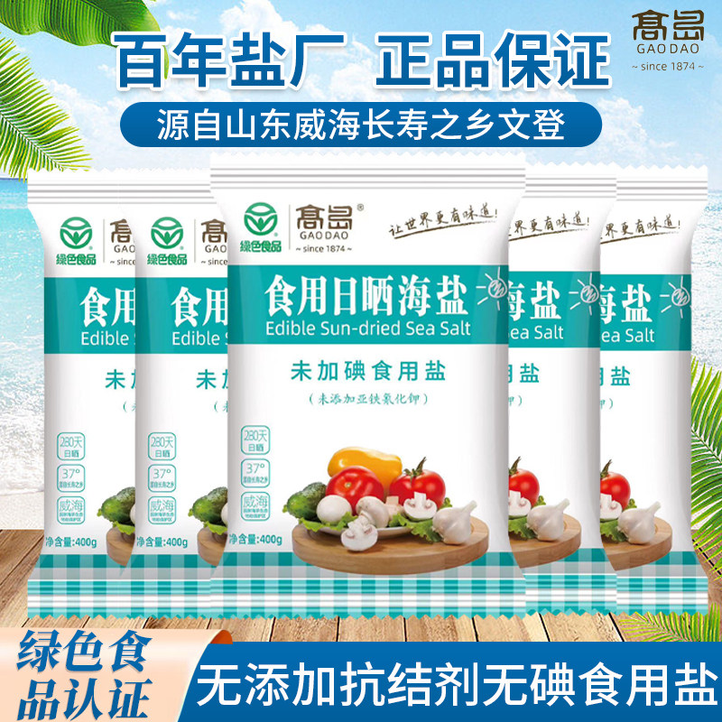 📚 威海高岛海盐400g*6袋未加碘无抗结剂天然日晒精制盐绿色食品批发