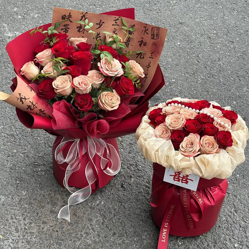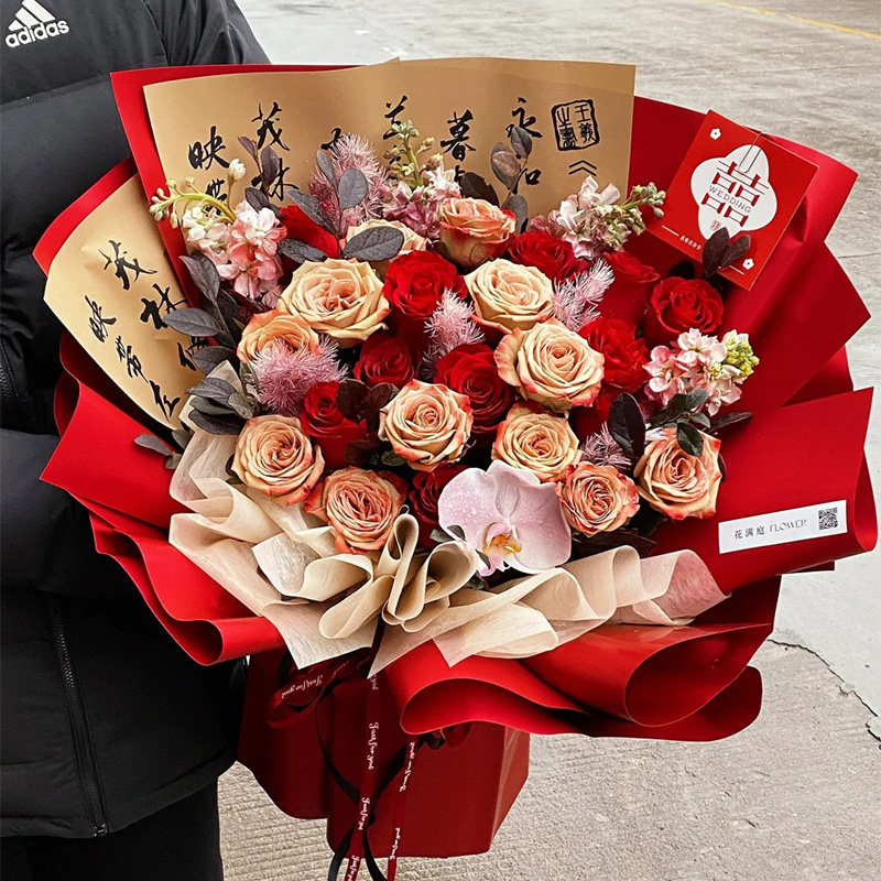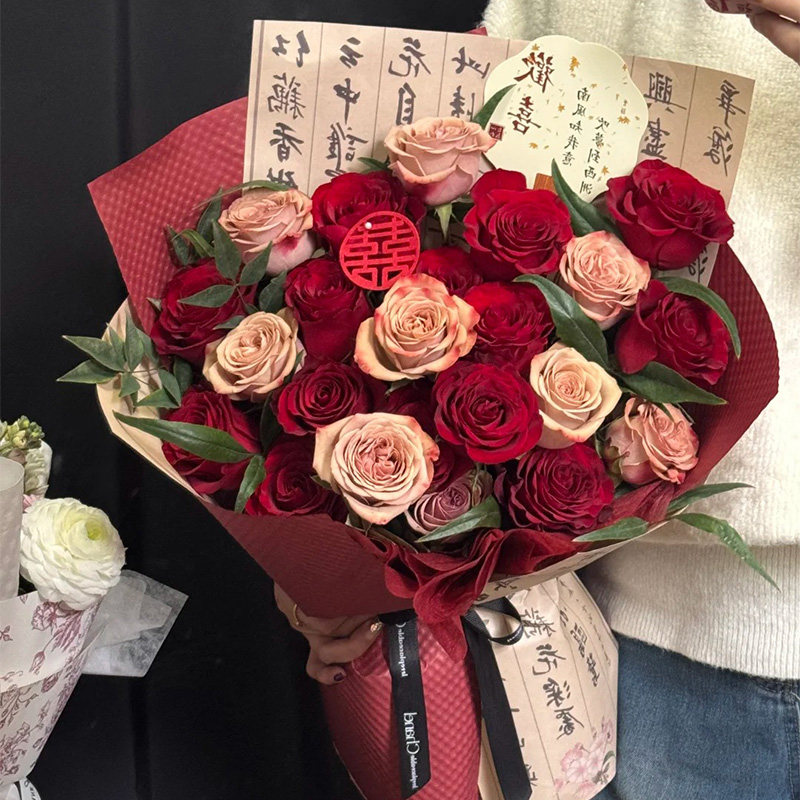 📚 新中式订婚花束包花纸中国复古书法纸鲜花红色包装纸结婚包装材料