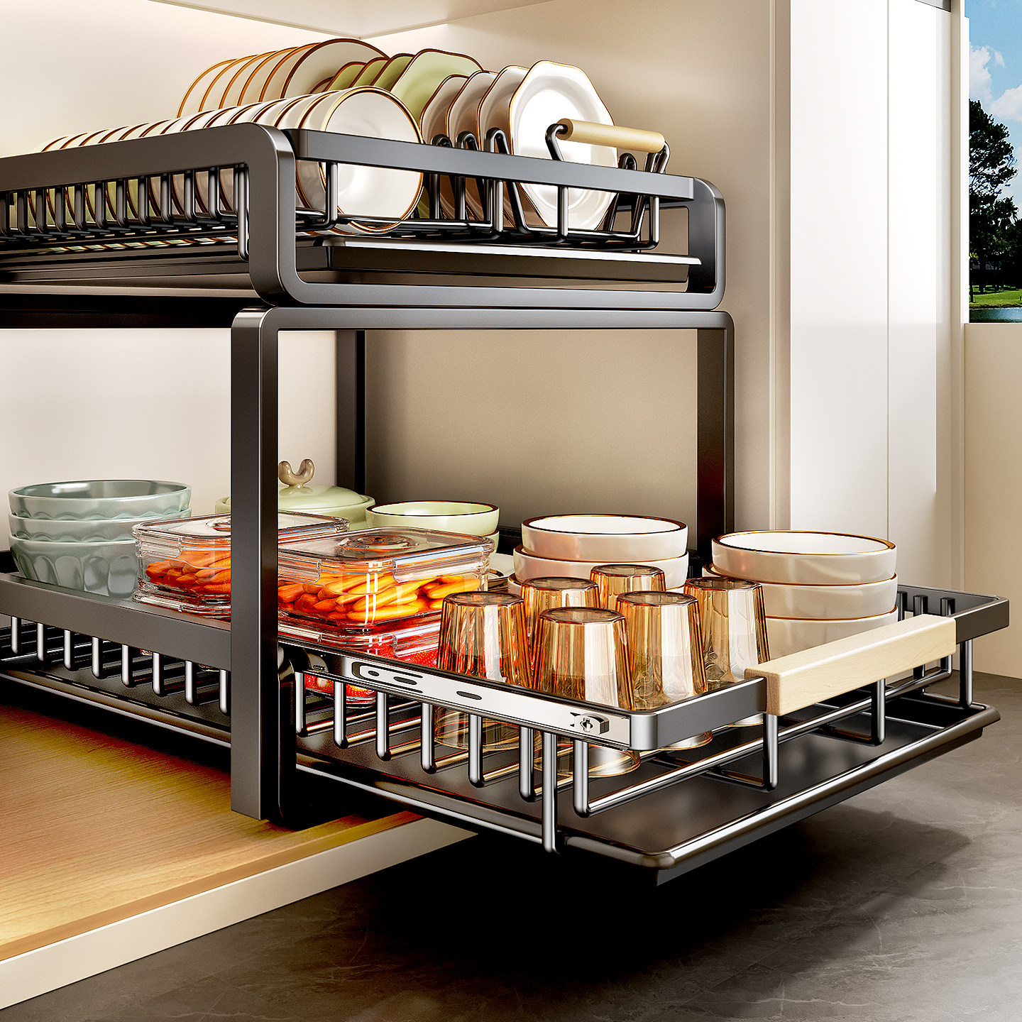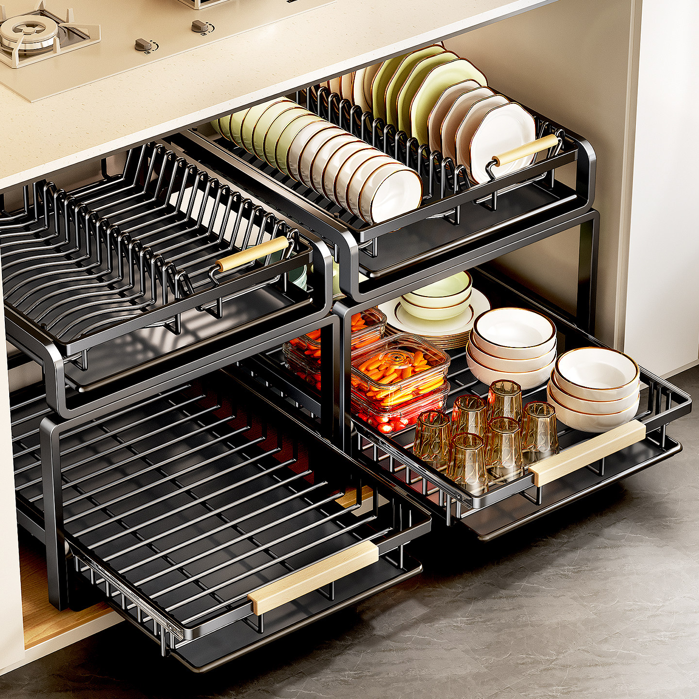 📚 碗碟收纳架厨房抽屉置物架橱柜内置式拉篮大容量抽拉碗盘沥水碗架