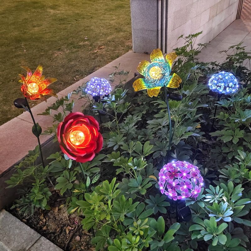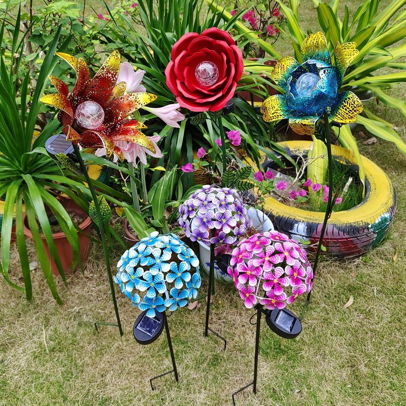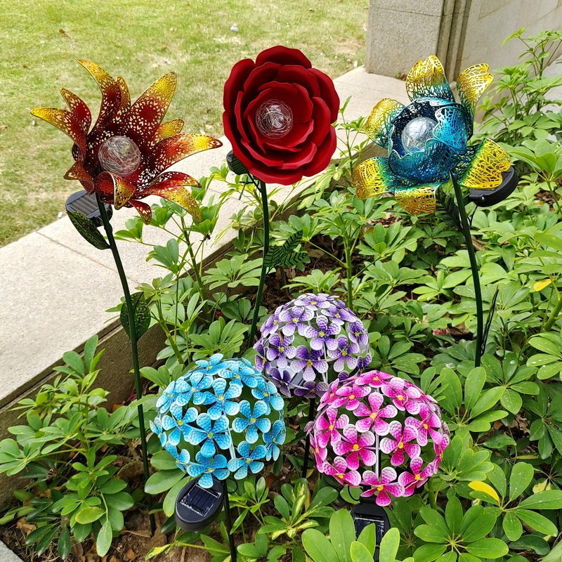 📚 新品花园户外庭院别墅公园铁艺工艺品精致摆件太阳能灯绣球花