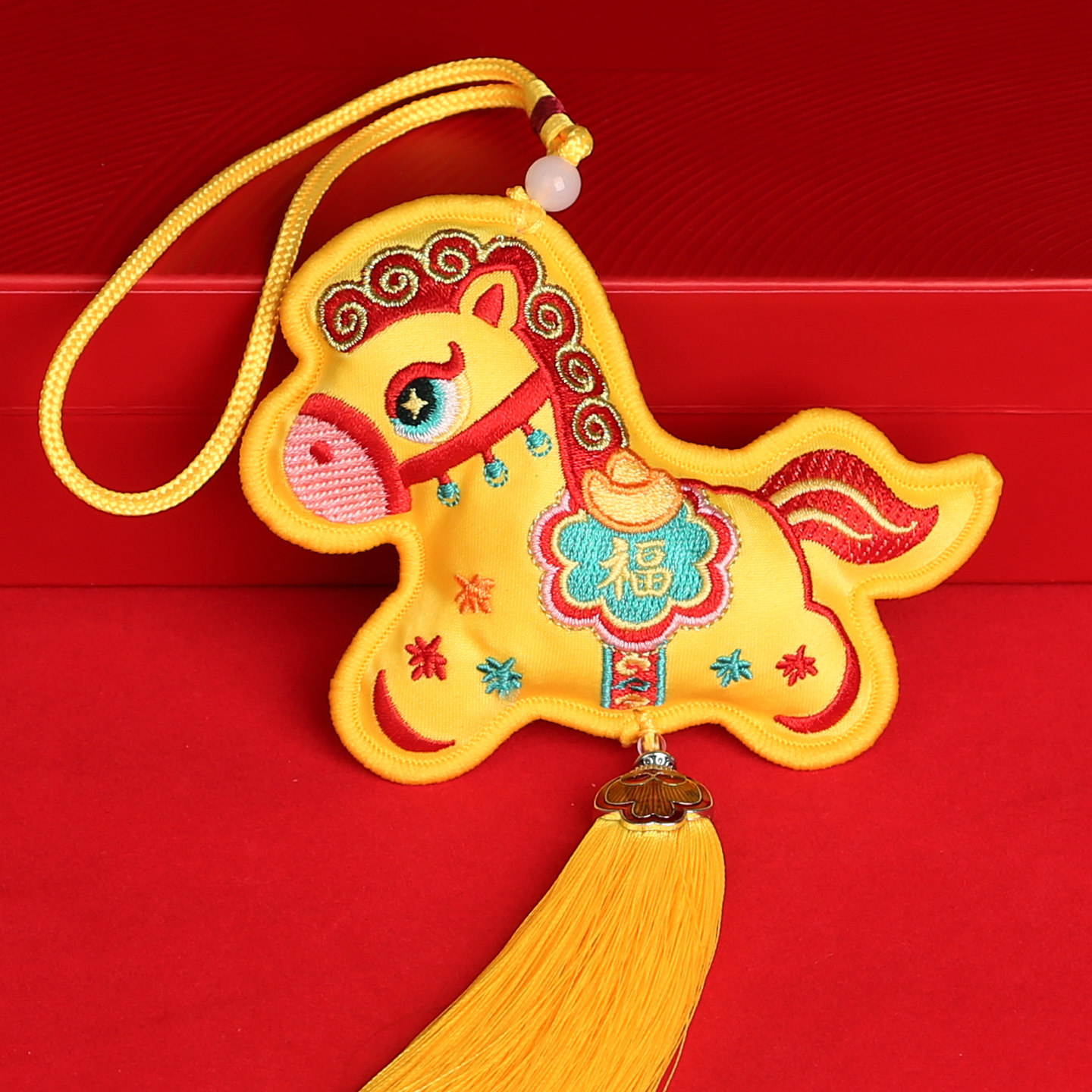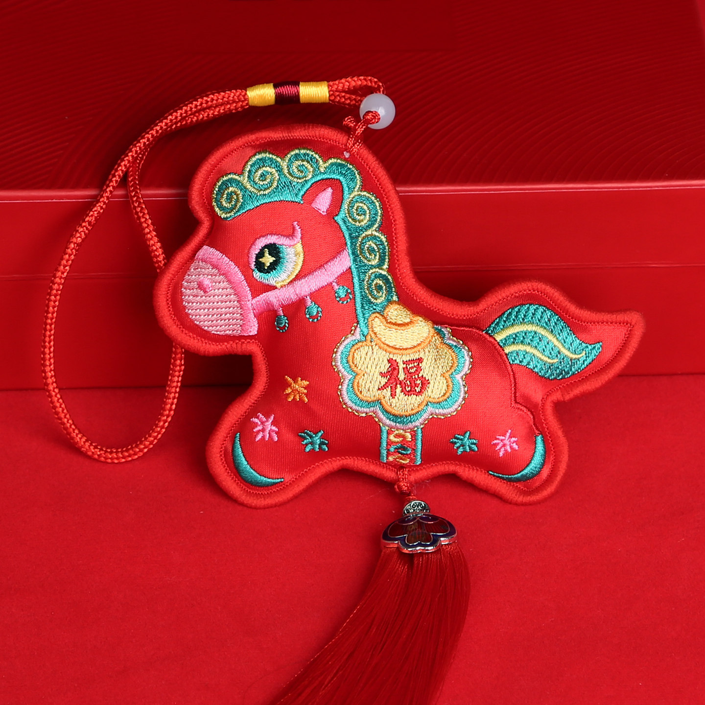 📚 福字马挂件刺绣生肖马挂饰新年装饰品春节室内吊饰门把手车内吊坠