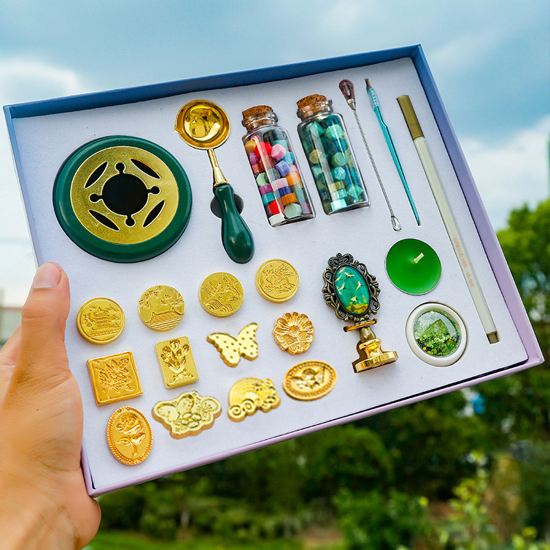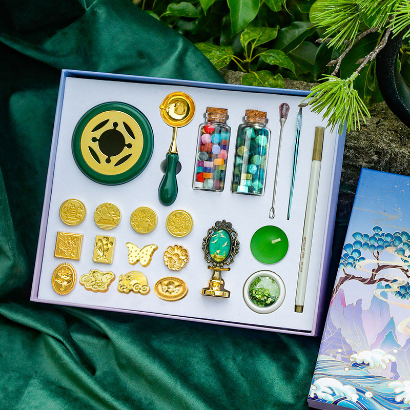 📚 韵轩异形火漆印章头礼盒套装全套新手便宜复古风仙鹤手柄铜头邀请函请柬封信封口蜡戳手账工具卡通可爱图案