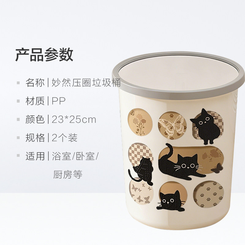 📚 妙然2只家用压圈垃圾桶卧室客厅垃圾篓子大容量垃圾筒纸篓收纳桶