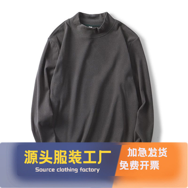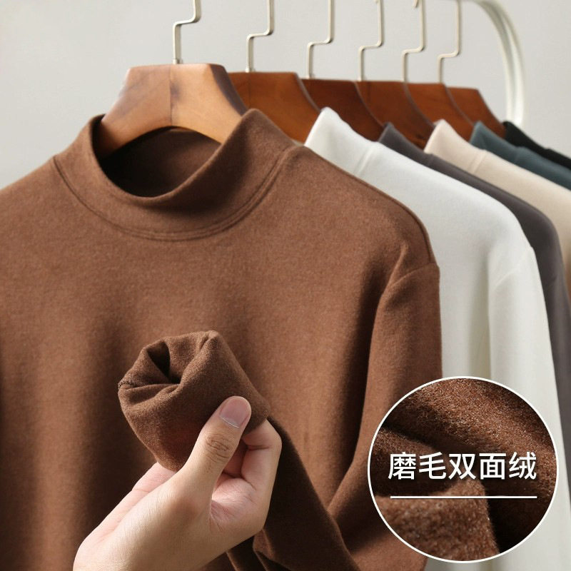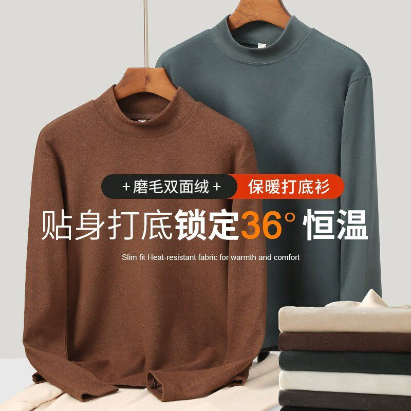 📚 半高领打底衫男德绒双面绒打底衫男士秋冬长袖加绒加厚内搭打底潮