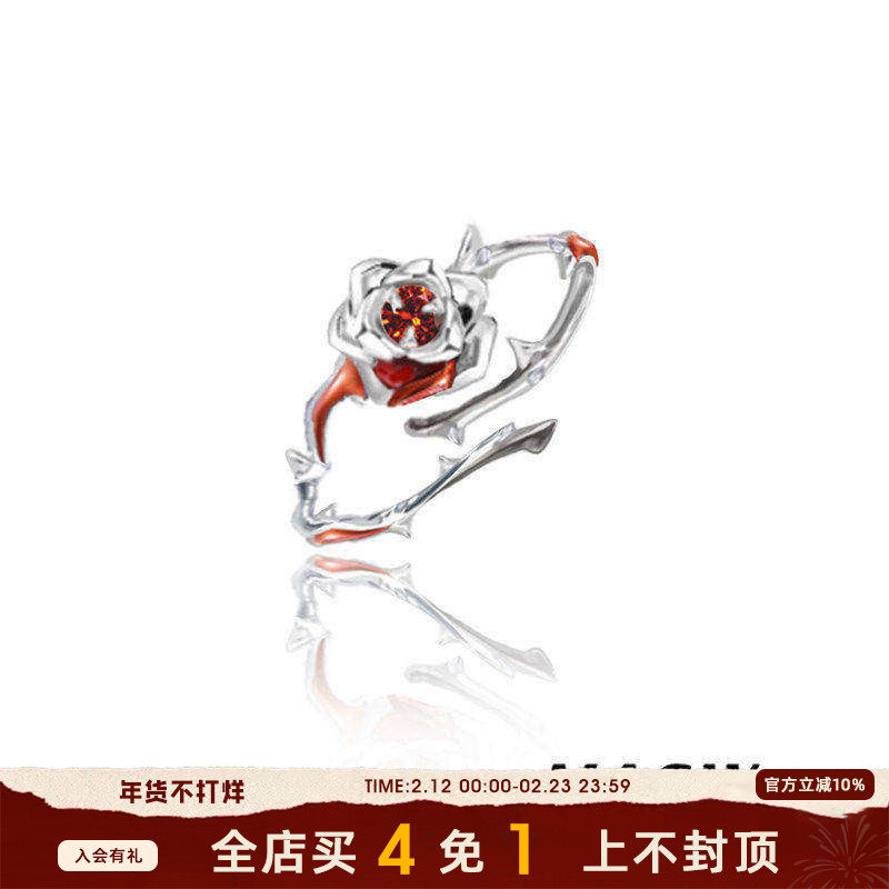 📚 MASW麻秀原创设计荆棘玫瑰个性食指戒甜酷辣妹蔷薇花朵指环M1405