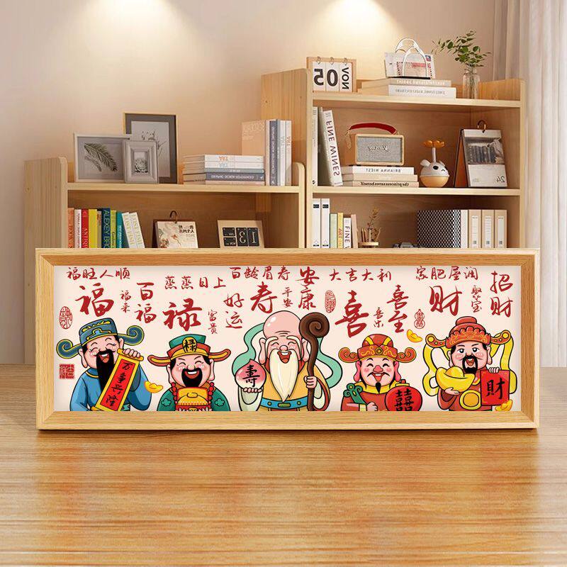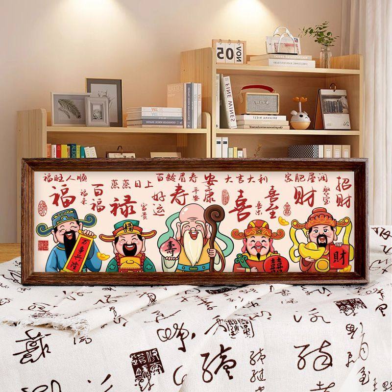📚 福禄寿喜财五福临门入户进门装饰画乔迁新居礼物玄关客厅摆件挂画