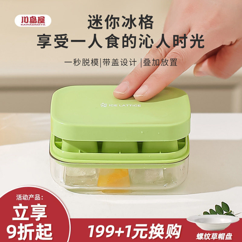 📚 川岛屋冰块模具家用食品级软硅胶制冰盒迷你按压小冰格冻冰块神器