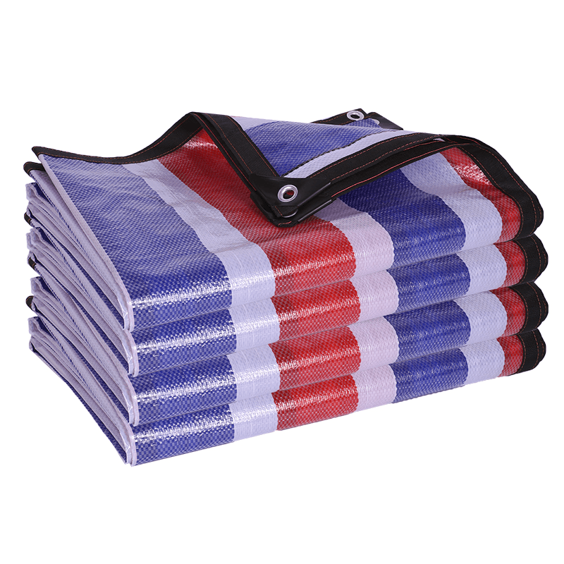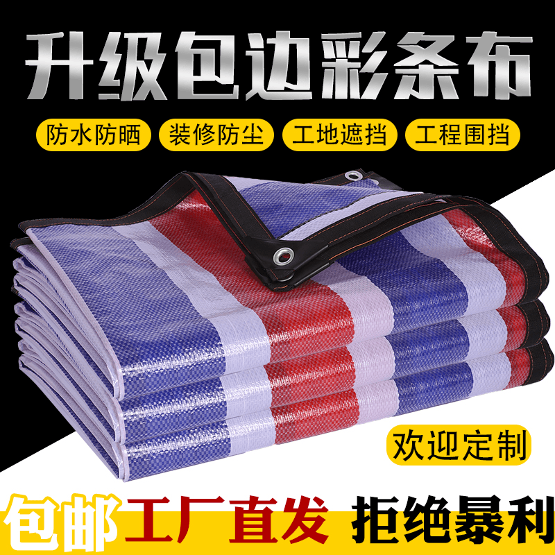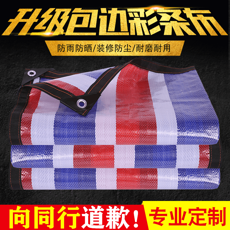 📚 包边打孔加厚彩条布防水布防晒遮阳防雨布塑料三色布户外遮雨篷布