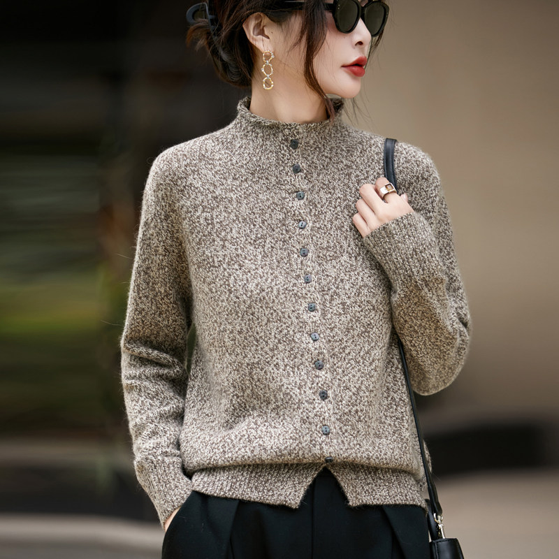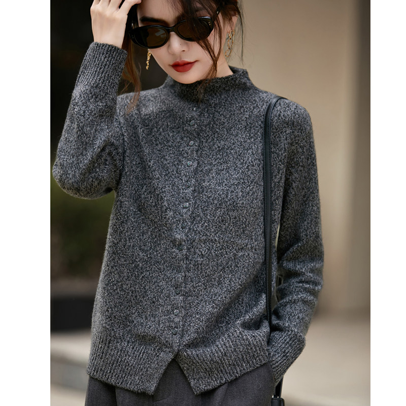 📚 2025秋冬花纱羊毛针织开衫女半高领毛衣外套打底外穿保暖毛衫上衣
