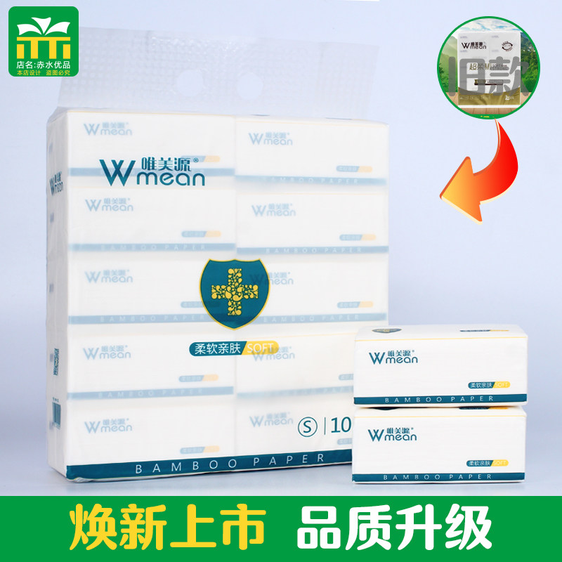 📚 唯美源超柔韧面巾纸抽纸赤水特产加厚竹浆4层10包小包S码整箱实惠