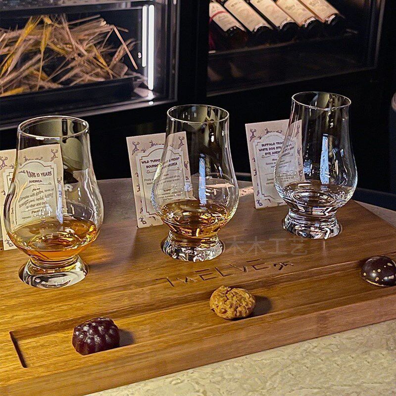 📚 威士忌品酒3孔托盘插卡木托清吧酒杯架洋酒调酒套装专业闻香杯垫