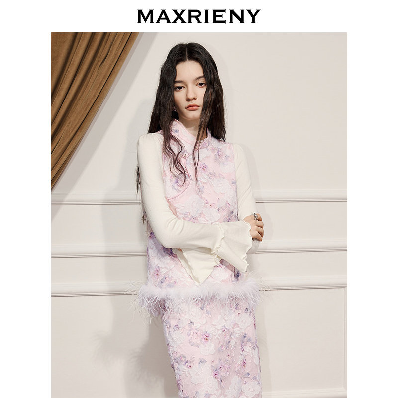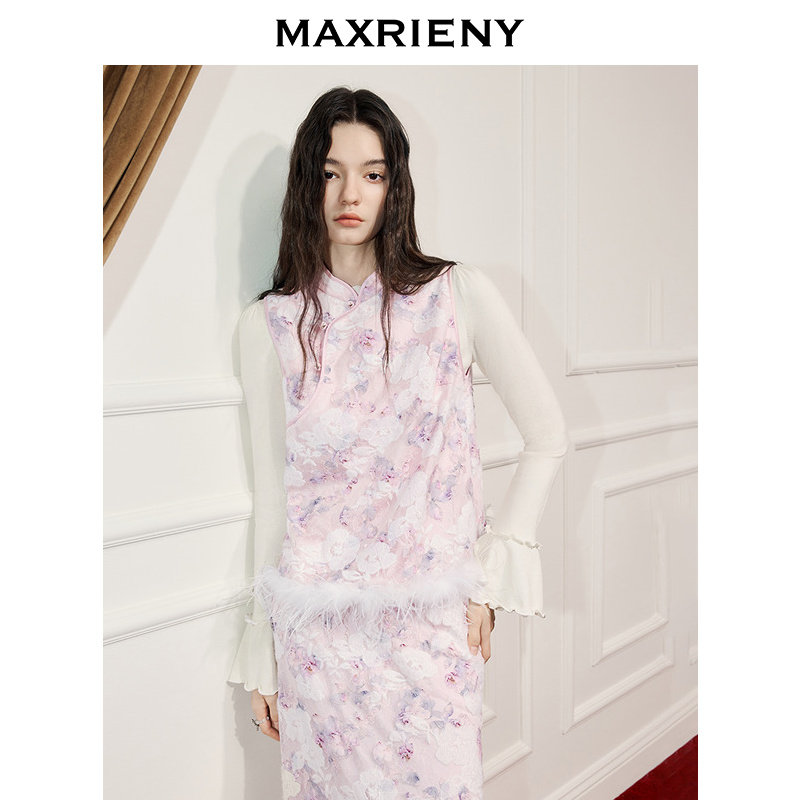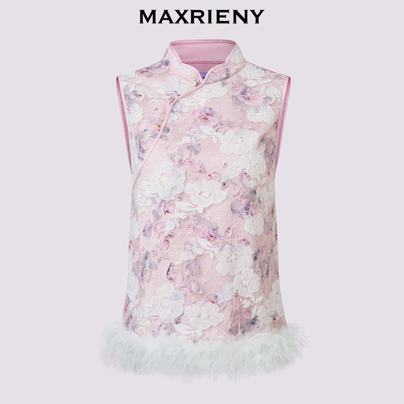 📚 MAXRIENY新中式拜年服女极繁新中式刺绣斜襟马甲背心冻糕粉色穿搭